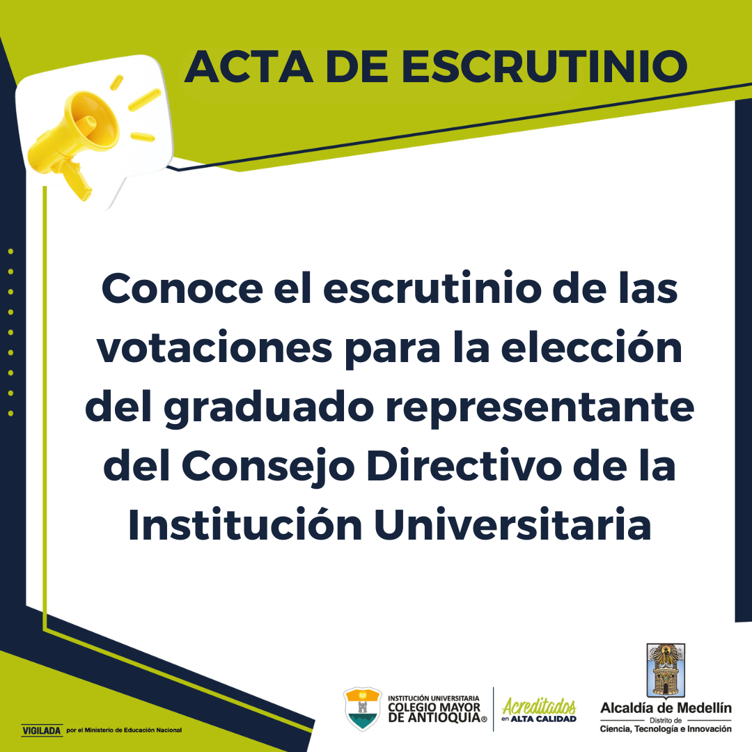Convocatorias General Noticias Escrutinio de las votaciones para la elección del graduado representante del Consejo Directivo de la Institución Universitaria enero 29, 2025. Conoce el acta con el resultado.