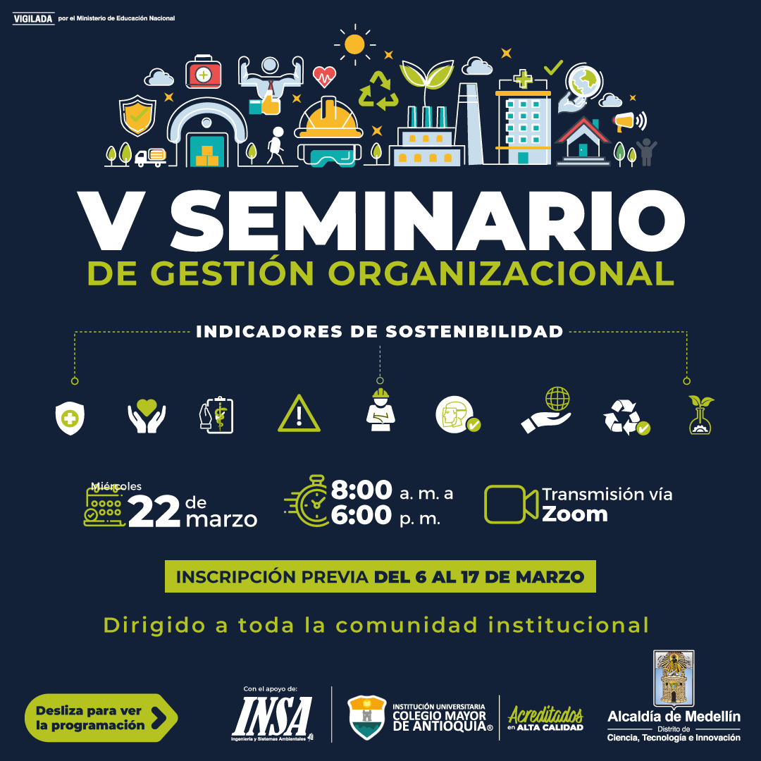 General Noticias V Seminario de Gestión Organizacional, Indicadores de Sostenibilidad marzo 6, 2023. Inscríbete al Seminario.