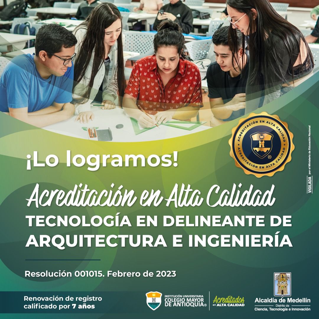 General Noticias La Tecnología en Delineante de Arquitectura e Ingeniería recibe Acreditación en Alta Calidad febrero 9, 2023. También se renovó por 7 años su Registro Calificado.