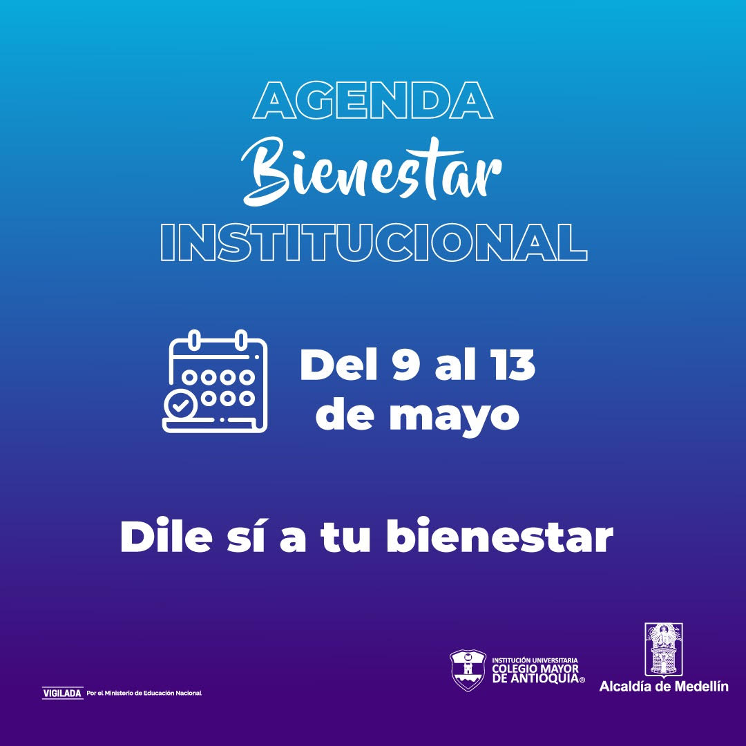 Agenda Bienestar Bienestar General Noticias Agéndate con Bienestar Institucional del 9 al 13 de mayo mayo 6, 2022. Agéndate y vela por tu bienestar.