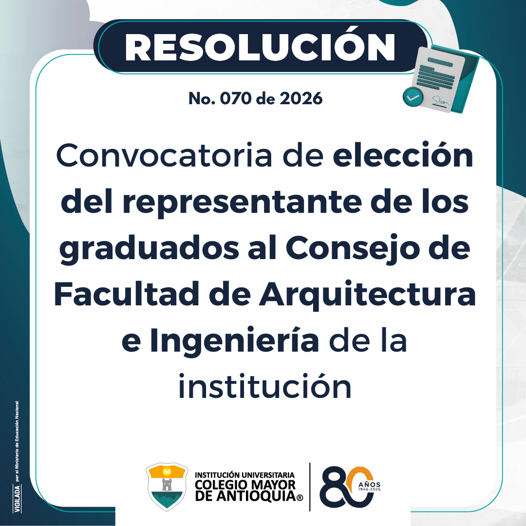 Convocatorias General Noticias Convocatoria de elección del representante de los graduadosante el Consejo de Facultad de Arquitectura e Ingeniería de la institución febrero 18, 2026. Conoce el cronograma de la convocatoria.