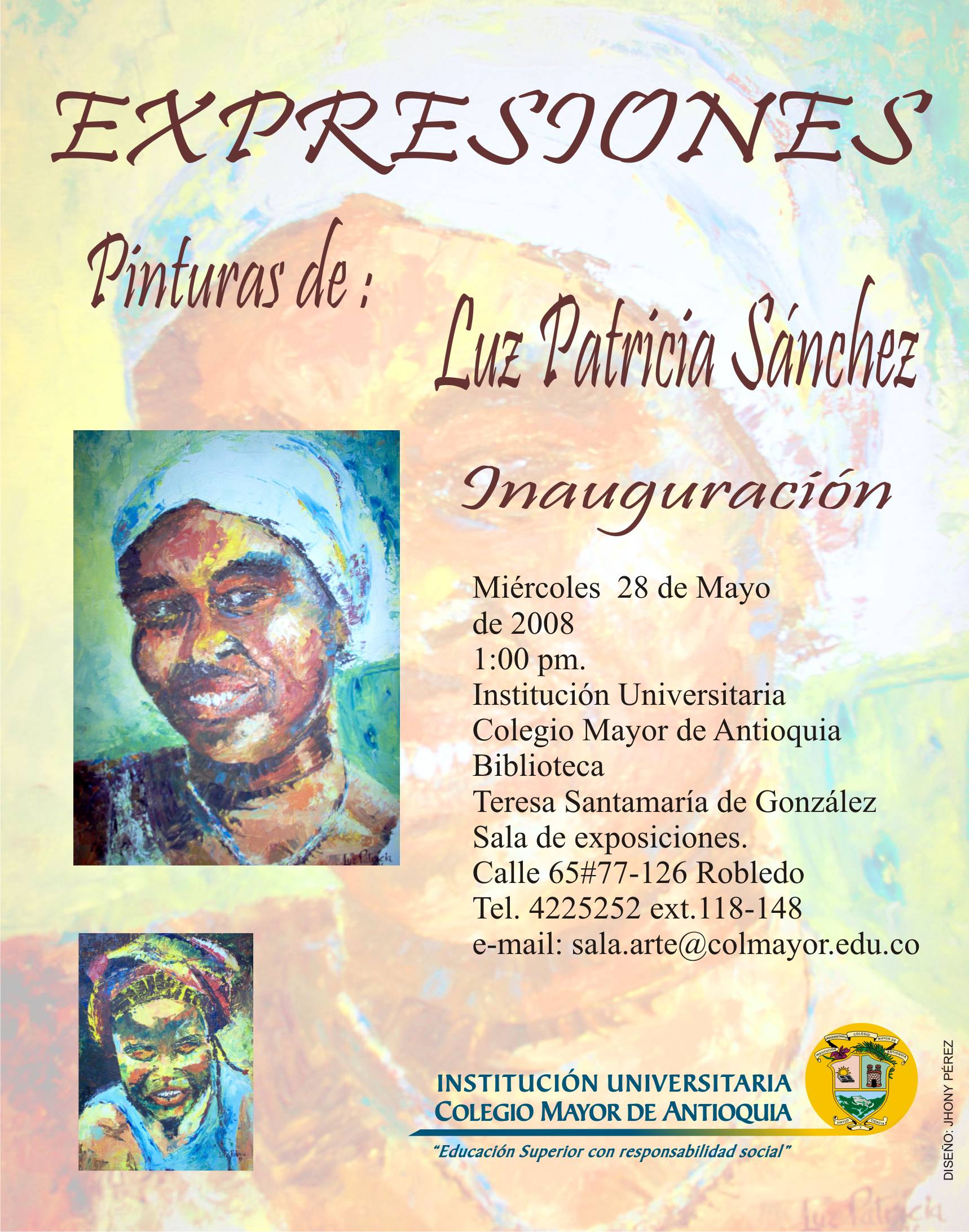 InicioBienestarLíneas y serviciosSala de ArteExposiciones Sala de ArteExposiciones 2008Exposición: expresiones – Luz Patricia Sánchez
