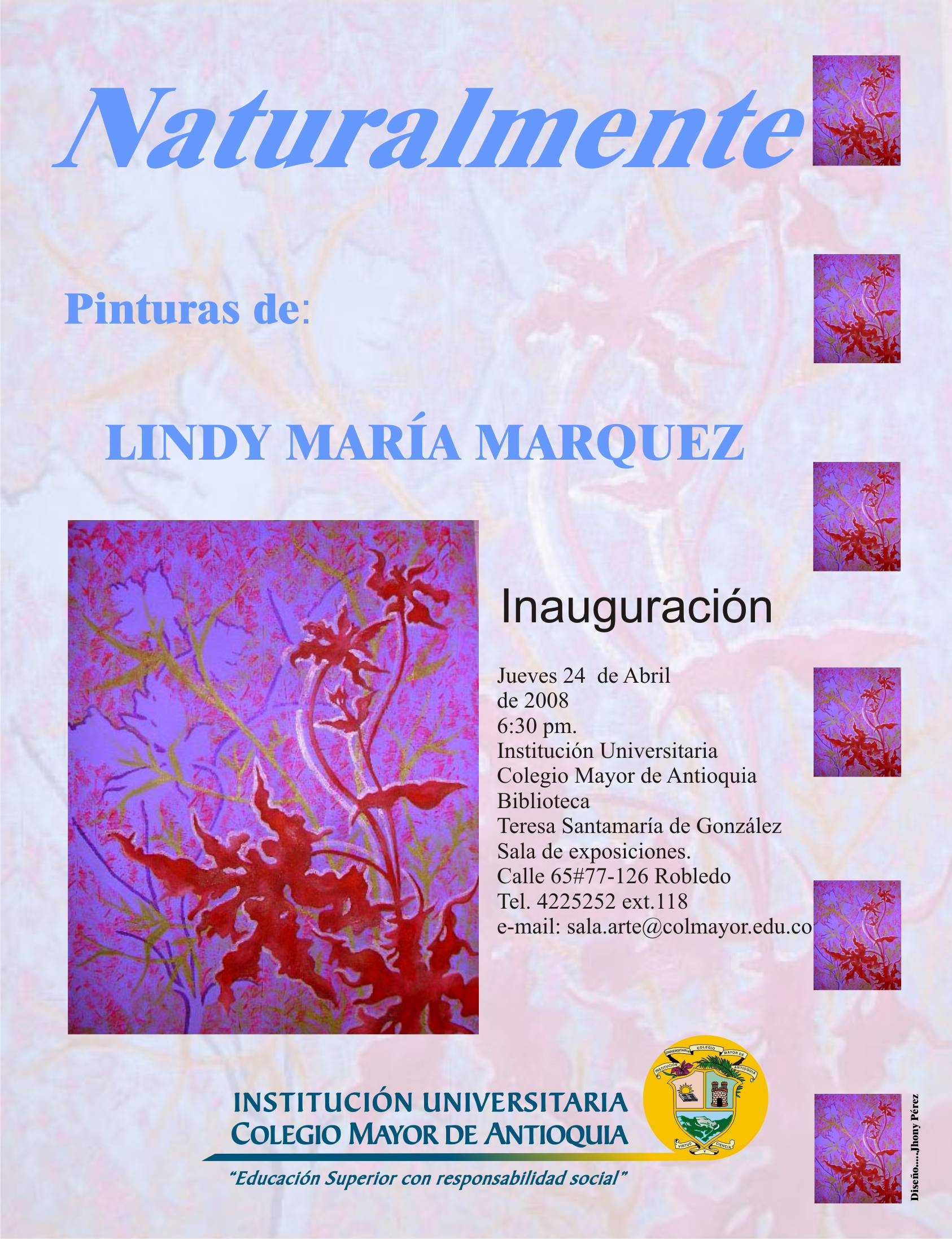 InicioBienestarLíneas y serviciosSala de ArteExposiciones Sala de ArteExposiciones 2008Exposición: naturalmente – Lindy Márquez