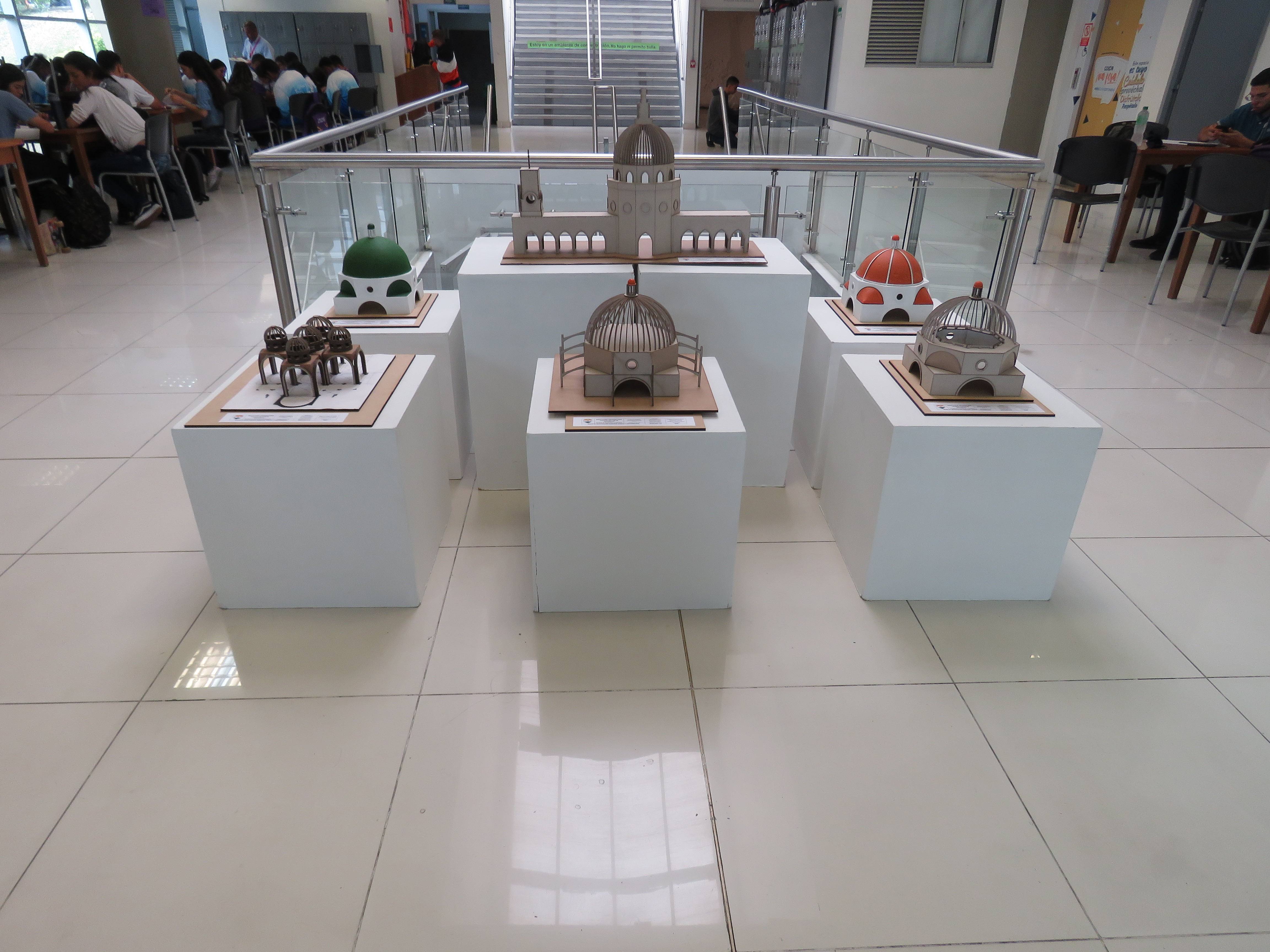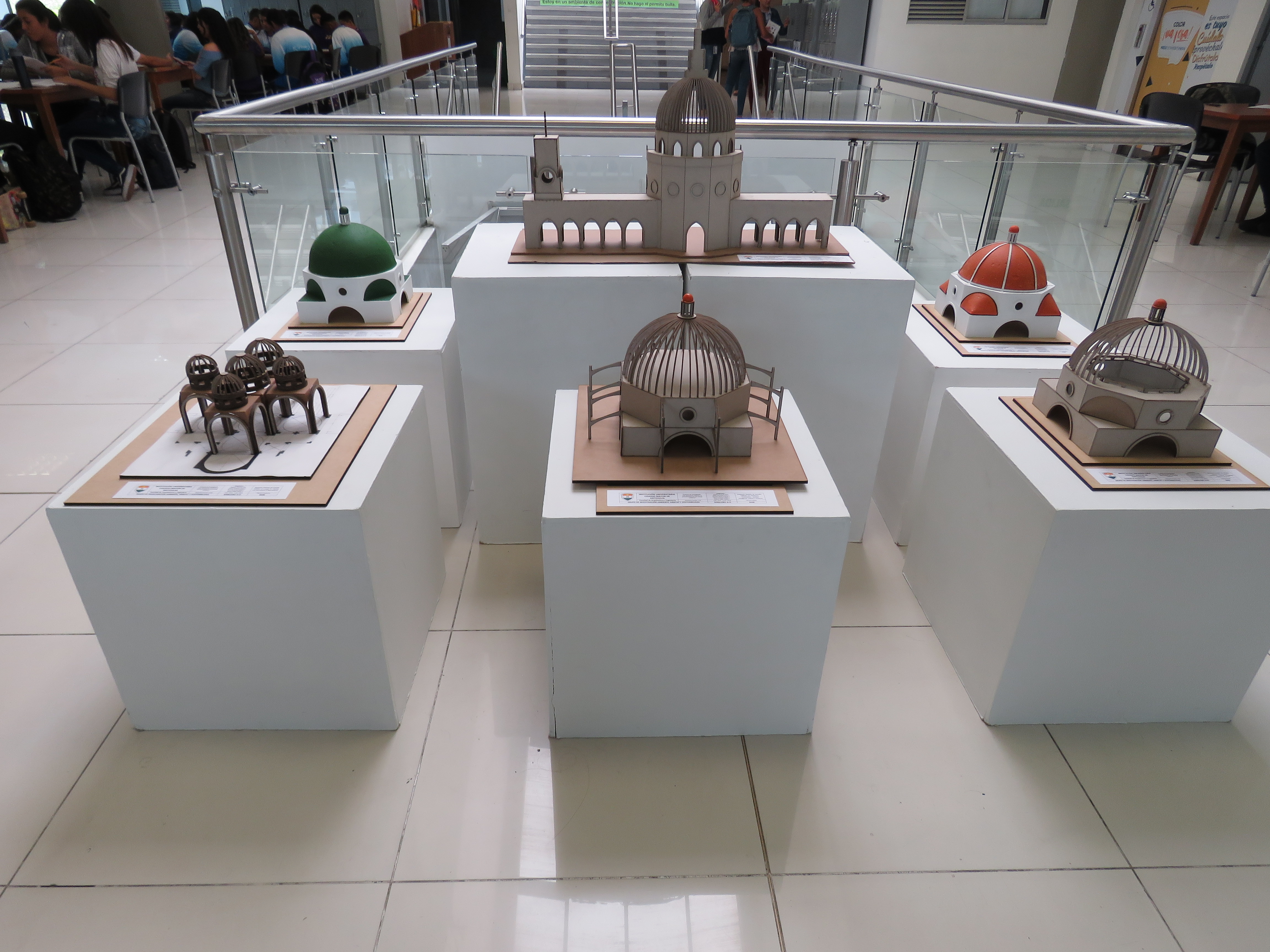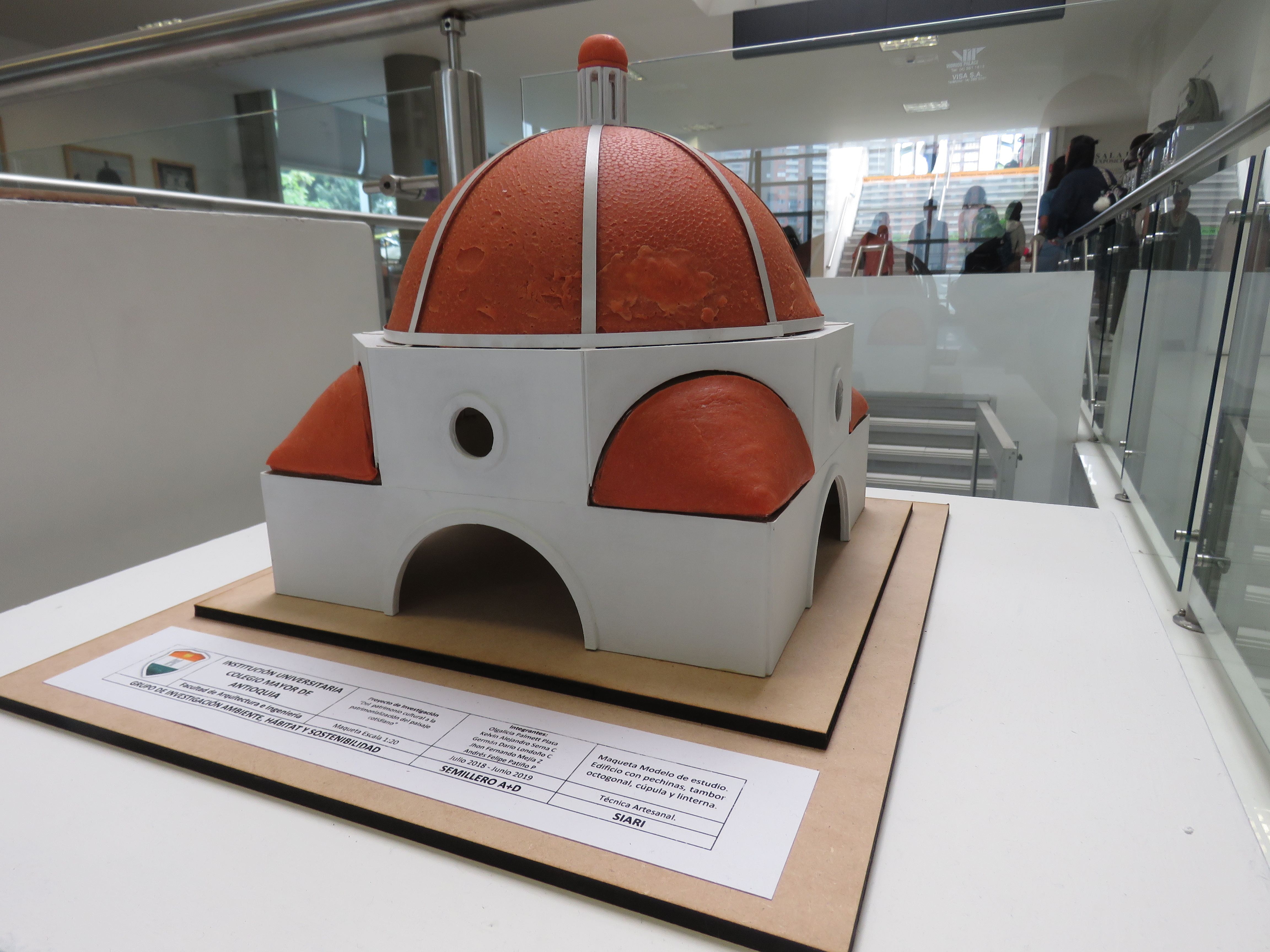 La muestra artística e investigativa recalca las experimentaciones realizadas en la materialización de sistemas abovedados de arcos, bóvedas y cupulas, registrados y mostrados con elementos tridimensionales maquetados o más conocidos como maquetas de estudio y análisis constructivo. En este ejercicio se experimentó con varios materiales y técnicas constructivas manuales para lograr las formas curvas estables y resistentes que requería cada elemento constructivo, queriendo conservar una metodología de trabajo tradicional.