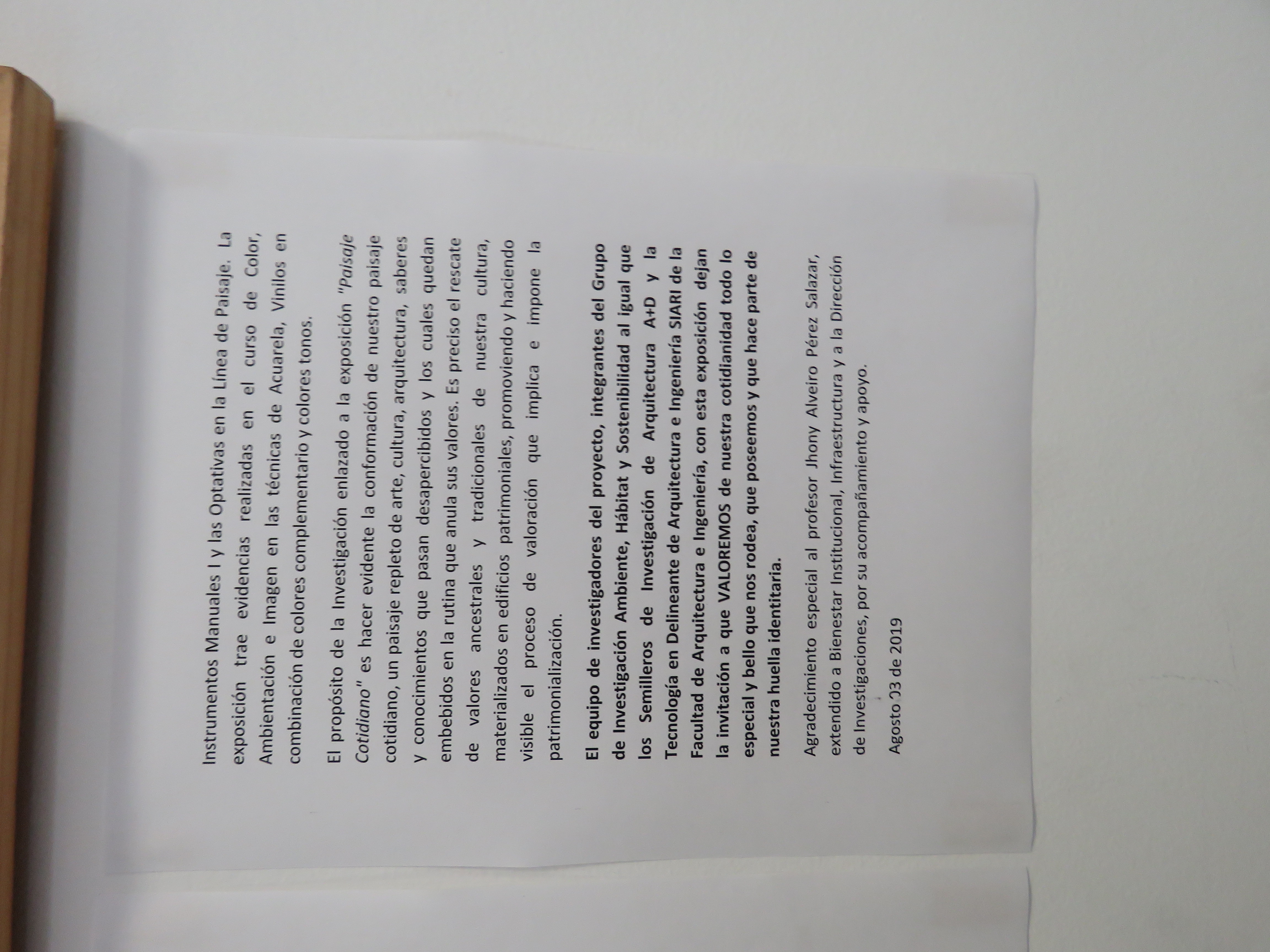 El equipo de investigación del proyecto, integrantes del Grupo de Investigación Ambiente, Hábitat y Sostenibilidad al igual que los Semilleros de Investigación de Arquitectura A+D y la Tecnología en Delineante de Arquitectura e Ingeniería SIARI de la Facultad de Arquitectura e Ingeniería, con esta exposición dejan la invitación a que VALOREMOS de nuestra cotidianidad, todo lo especial y bello que nos rodea, que poseemos y que hace parte de nuestra huella identitaria.