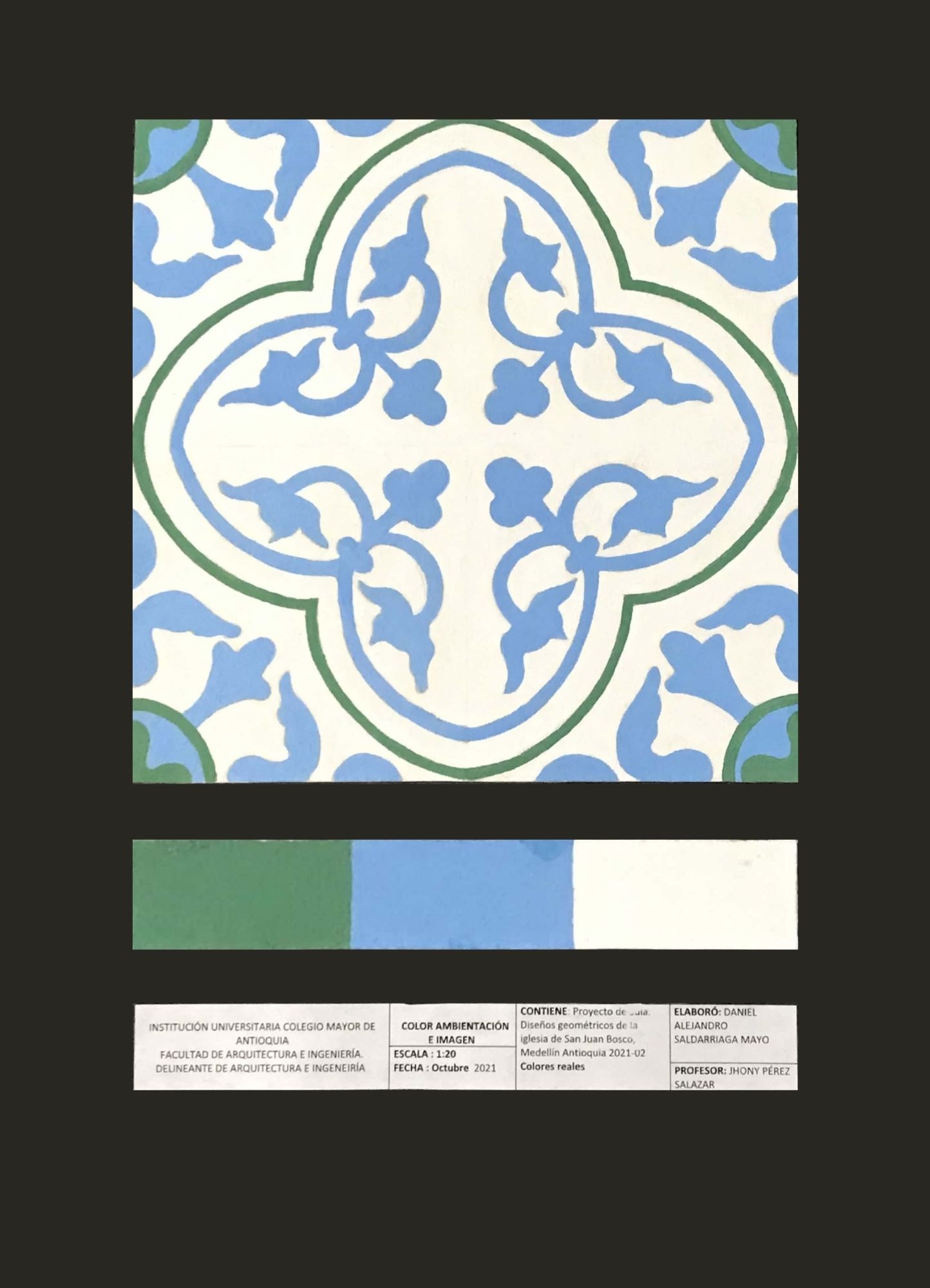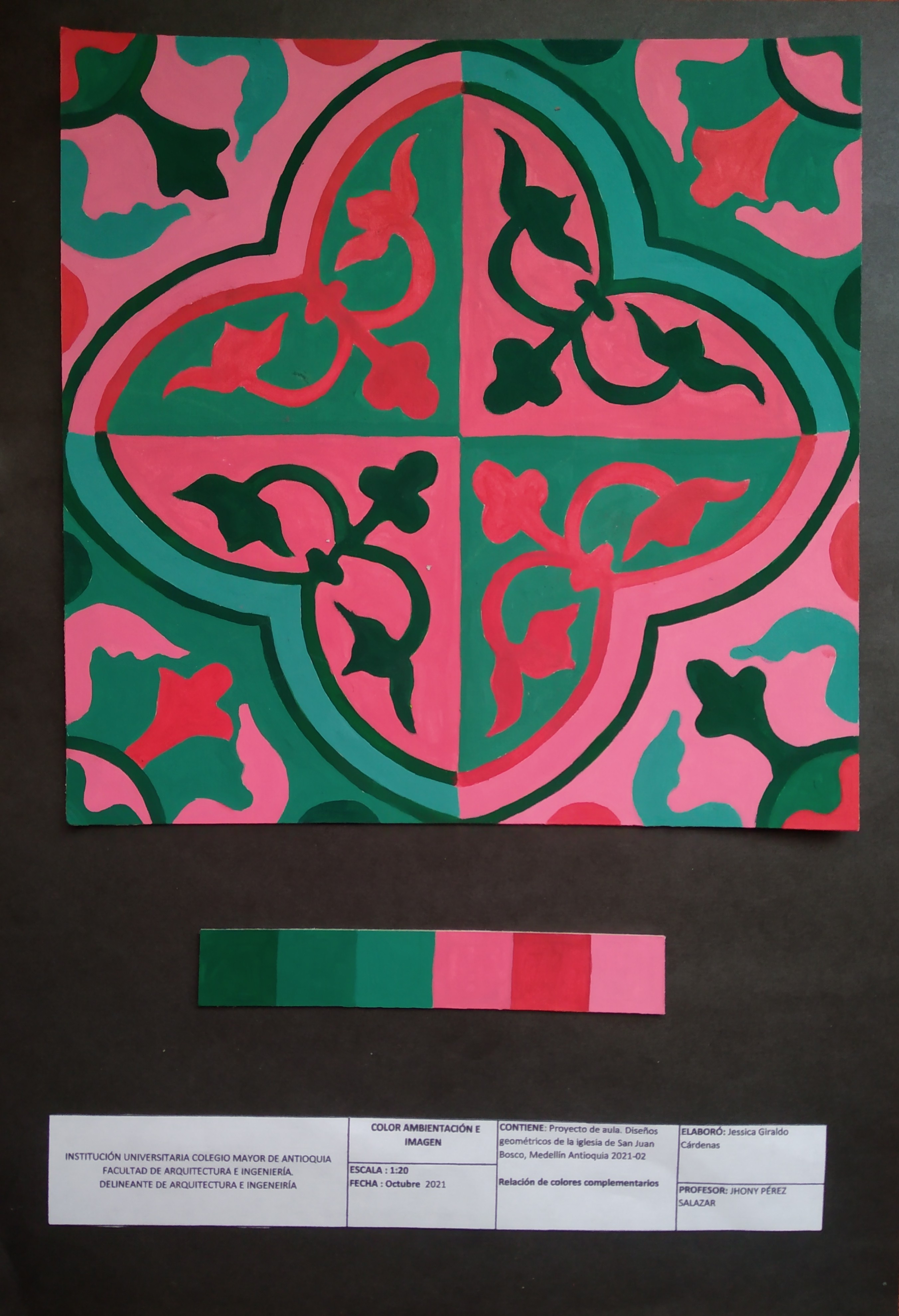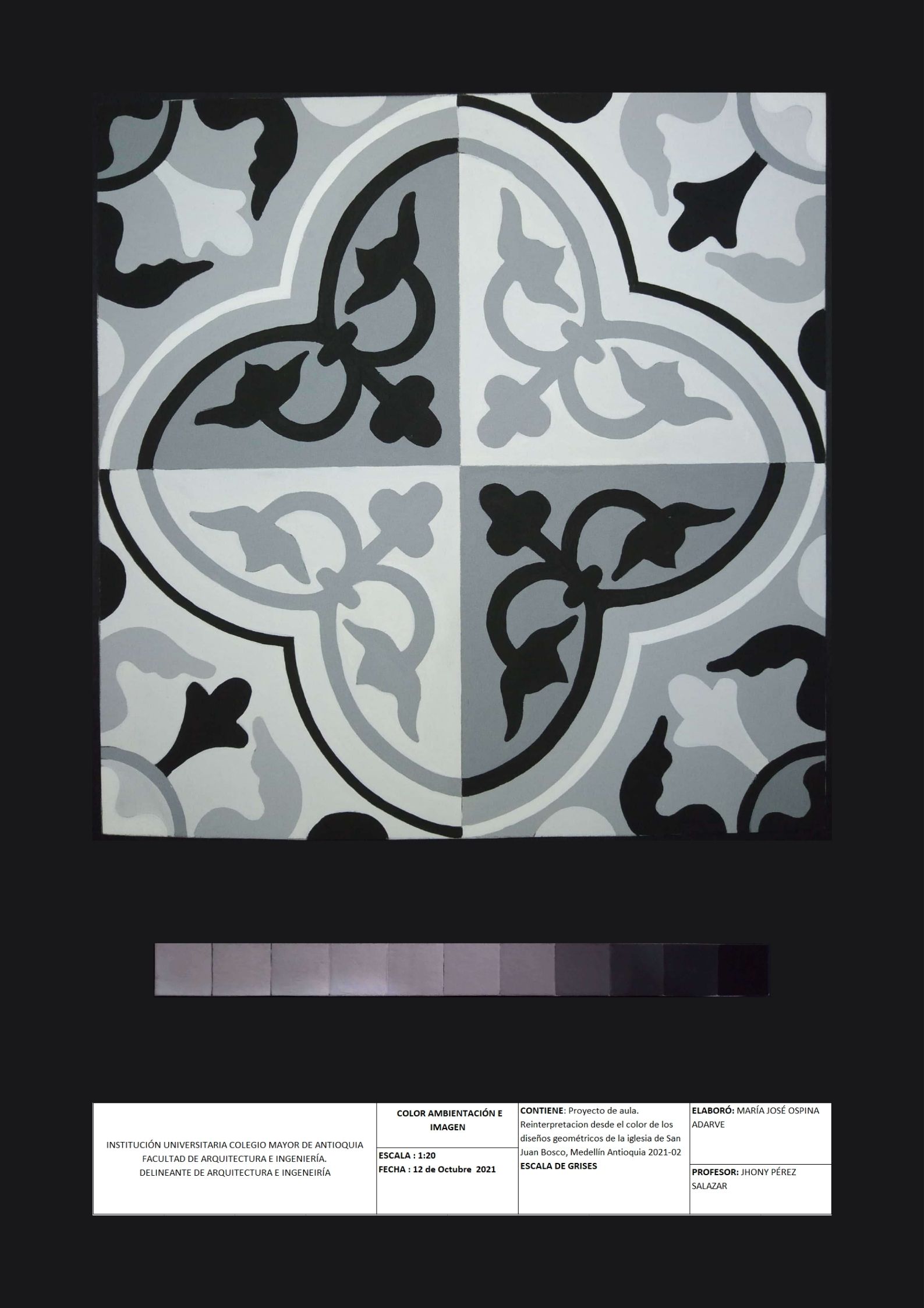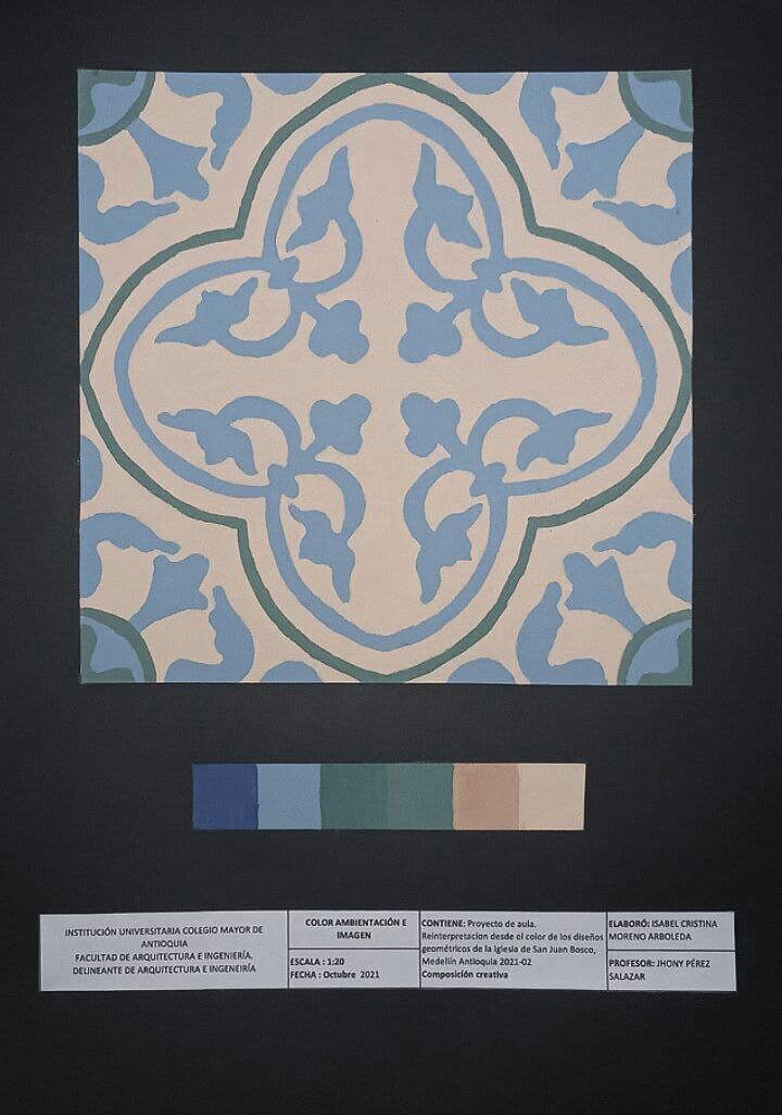 Esta exposición parte de un ejercicio académico y proyecto de aula, donde se plantea la identificación, reinterpretación y ambientación desde el color de los diseños de los pisos de la Iglesia San Juan Bosco, la cual está ubicada en el centro de la ciudad de Medellín Antioquia.