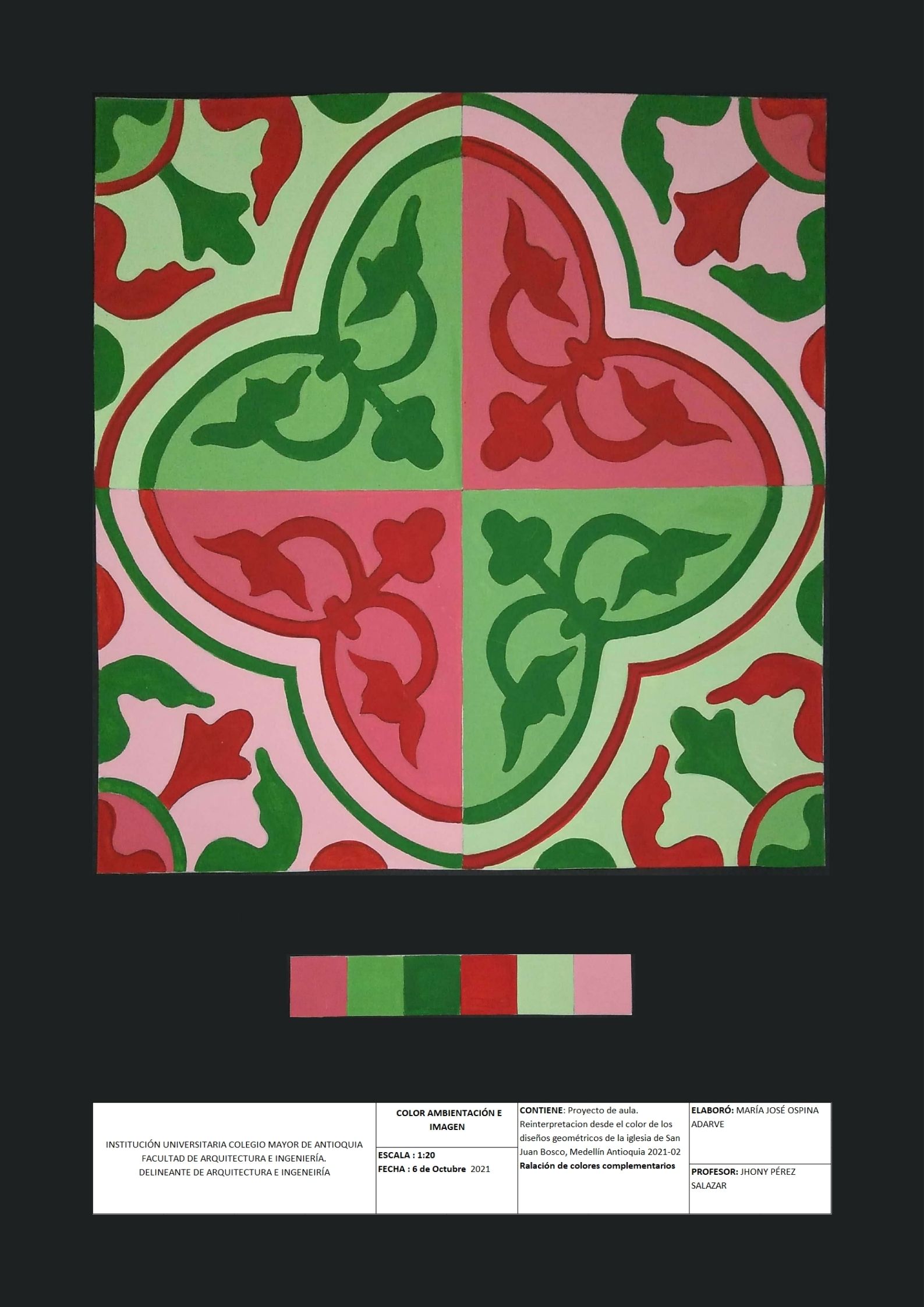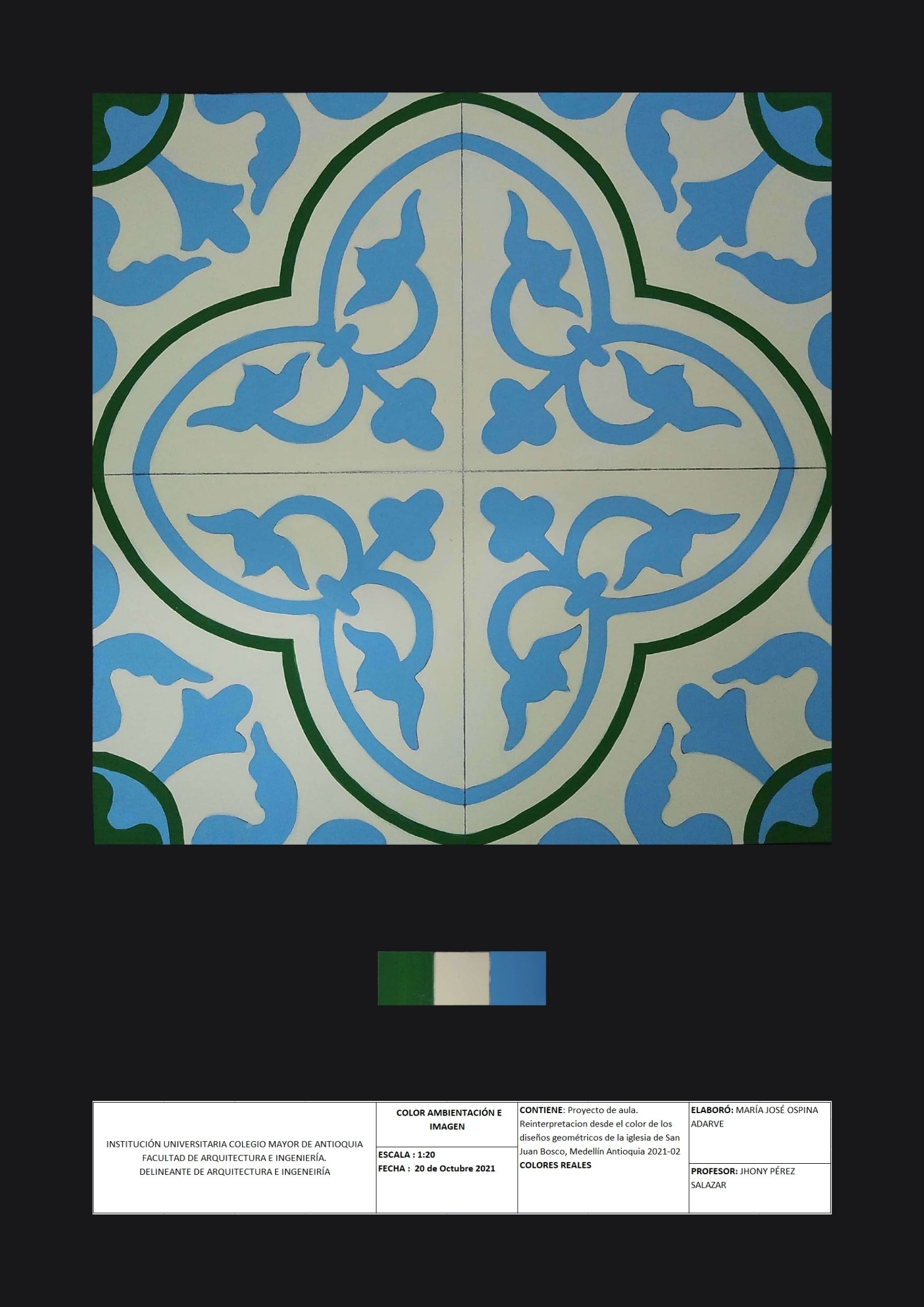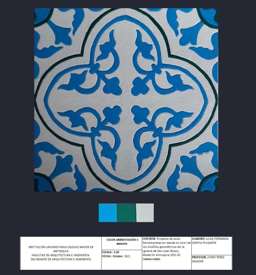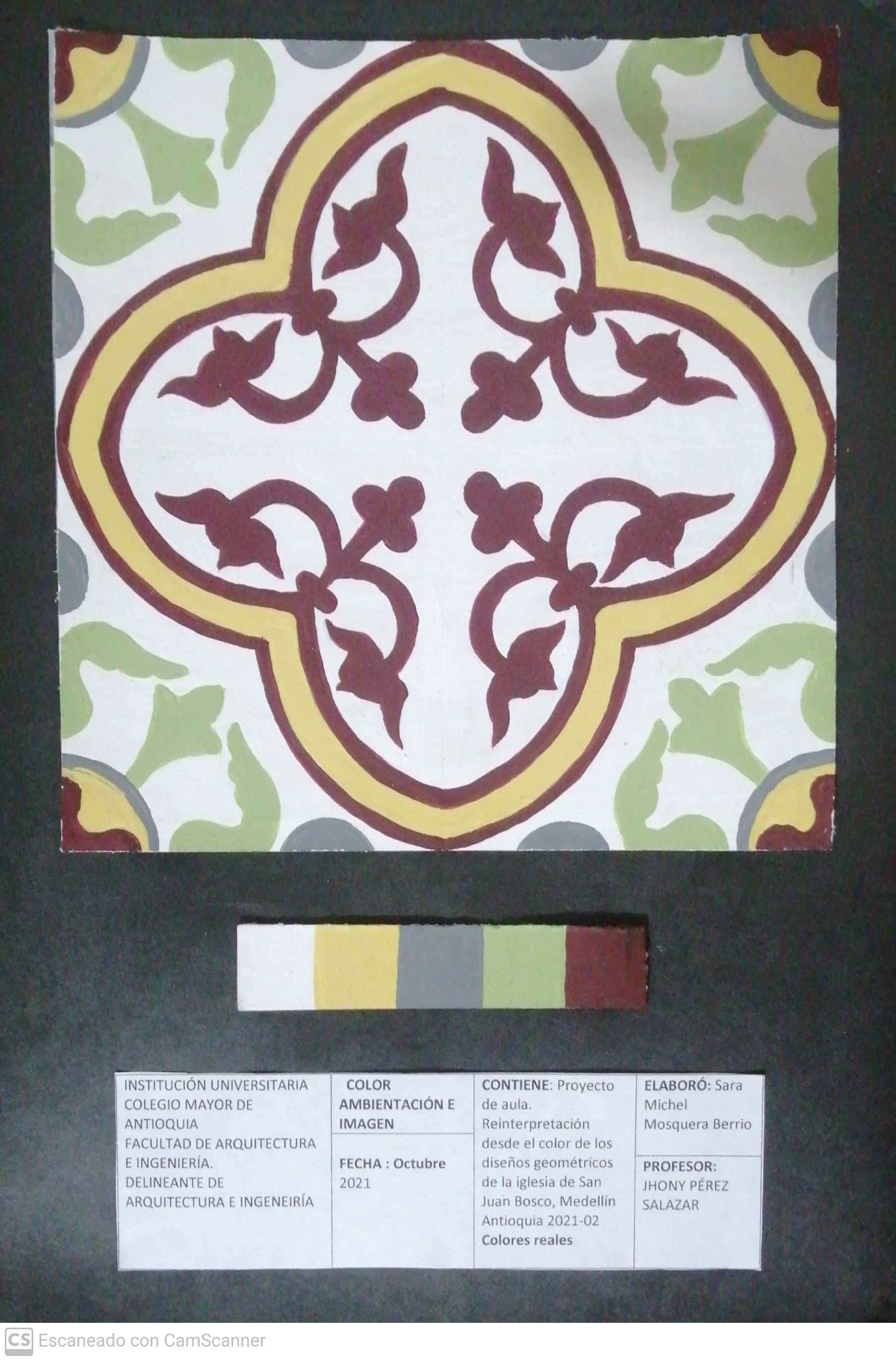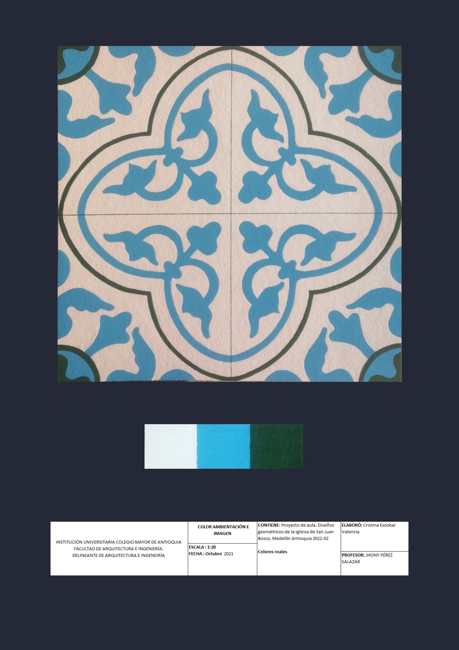 Esta exposición parte de un ejercicio académico y proyecto de aula, donde se plantea la identificación, reinterpretación y ambientación desde el color de los diseños de los pisos de la Iglesia San Juan Bosco, la cual está ubicada en el centro de la ciudad de Medellín Antioquia.
