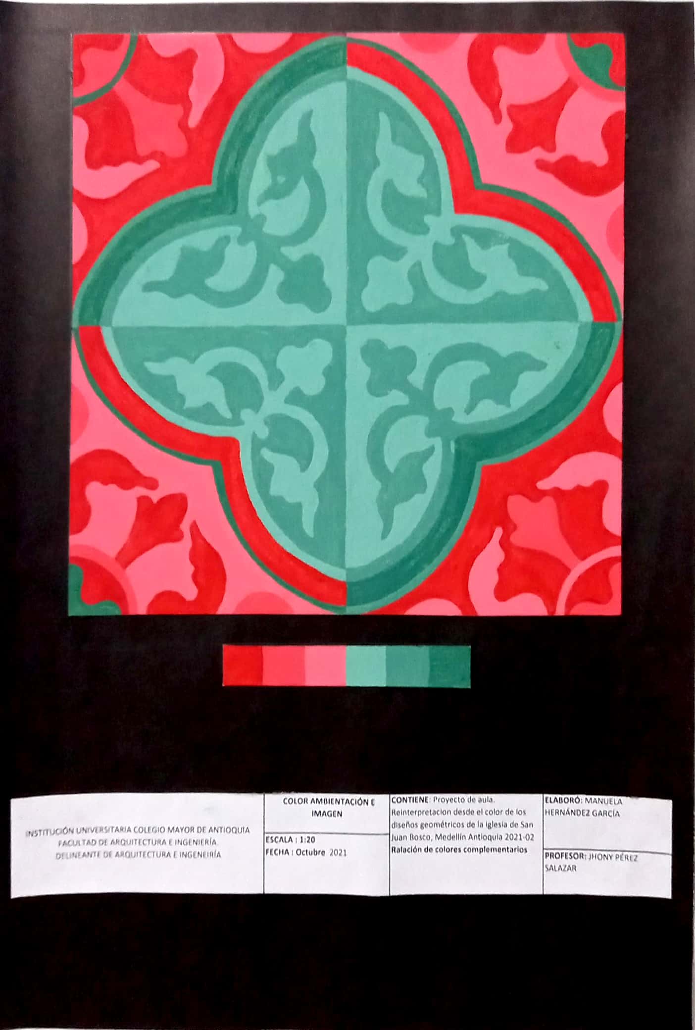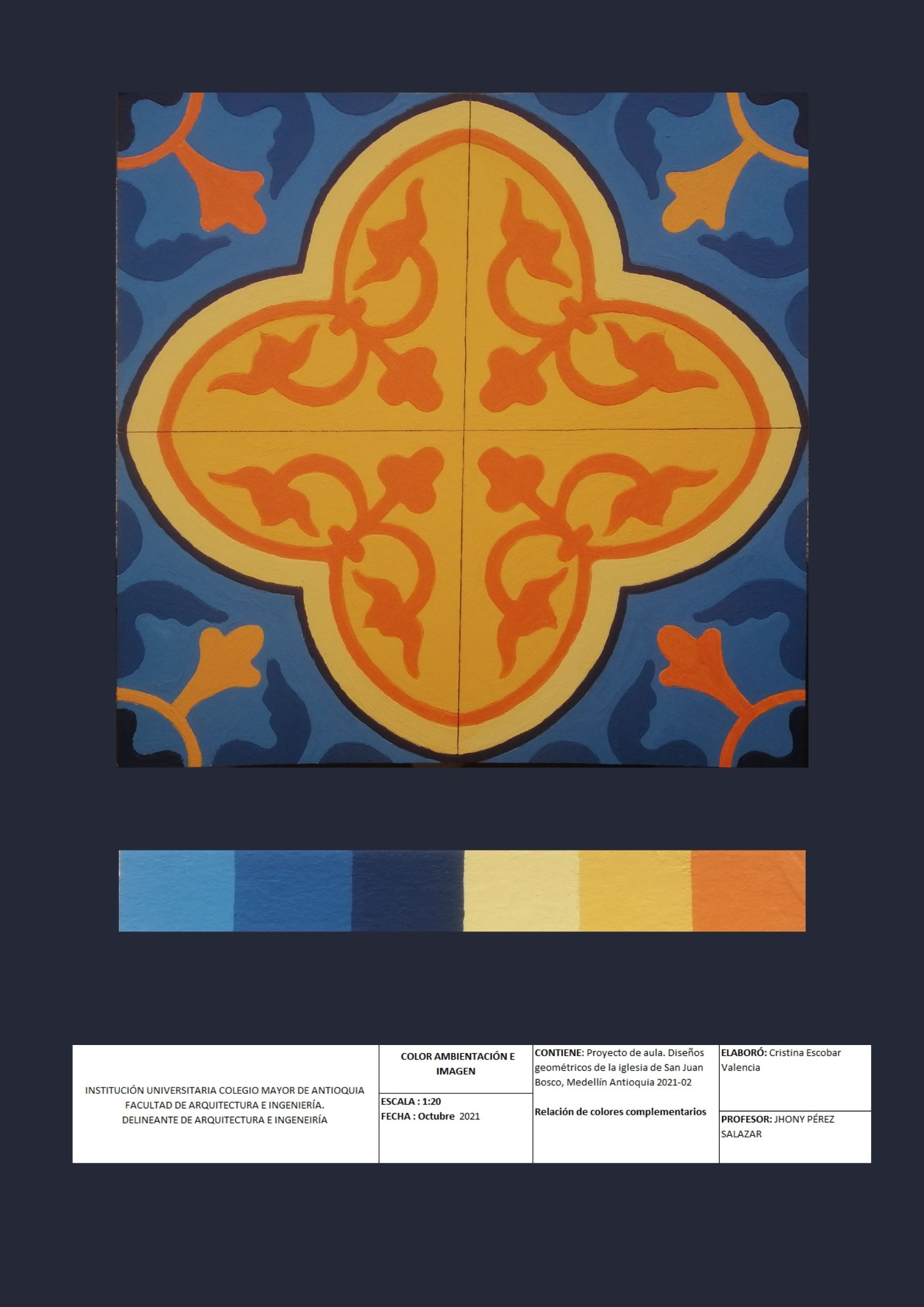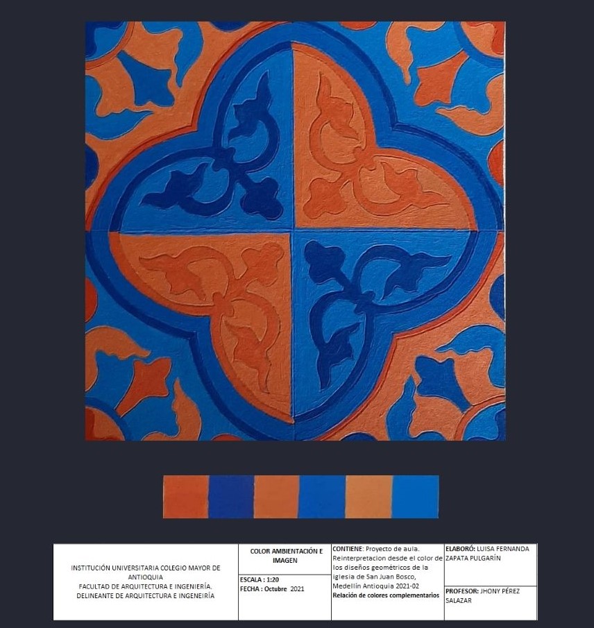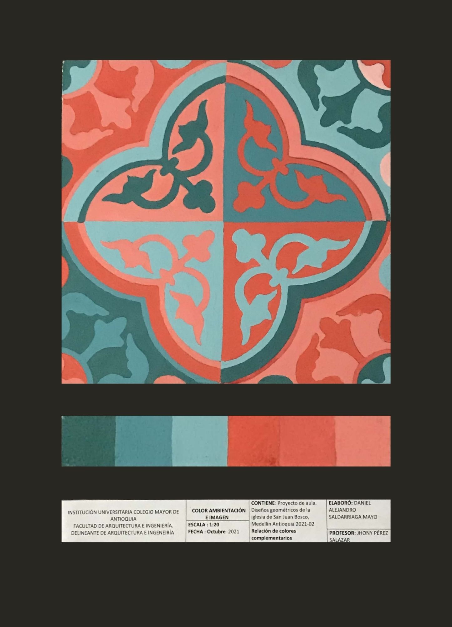 Esta exposición parte de un ejercicio académico y proyecto de aula, donde se plantea la identificación, reinterpretación y ambientación desde el color de los diseños de los pisos de la Iglesia San Juan Bosco, la cual está ubicada en el centro de la ciudad de Medellín Antioquia.