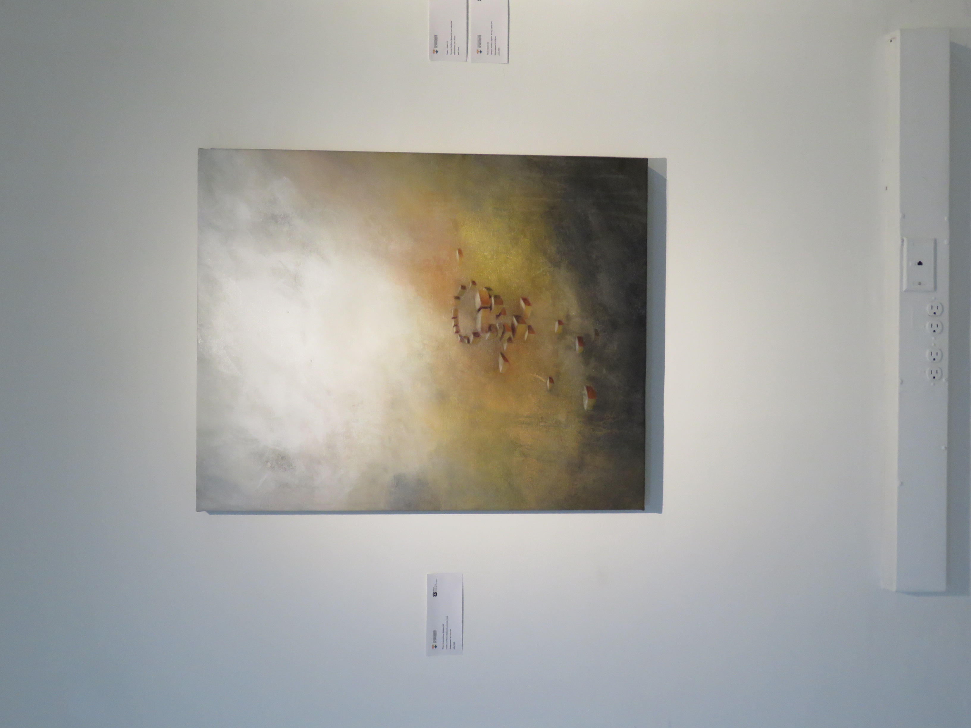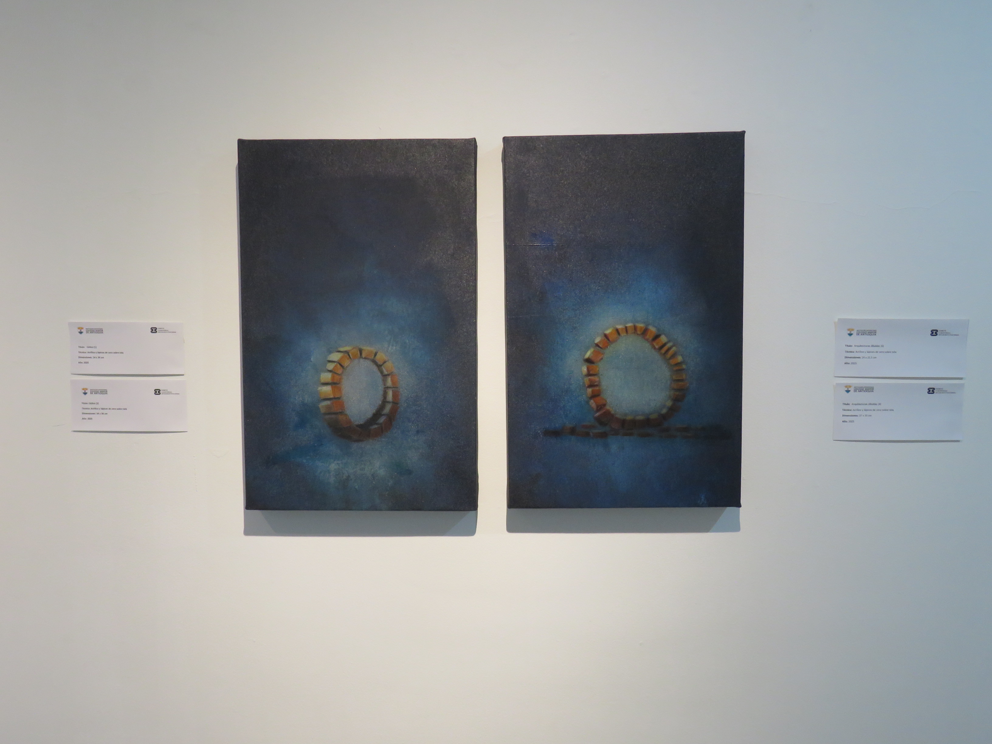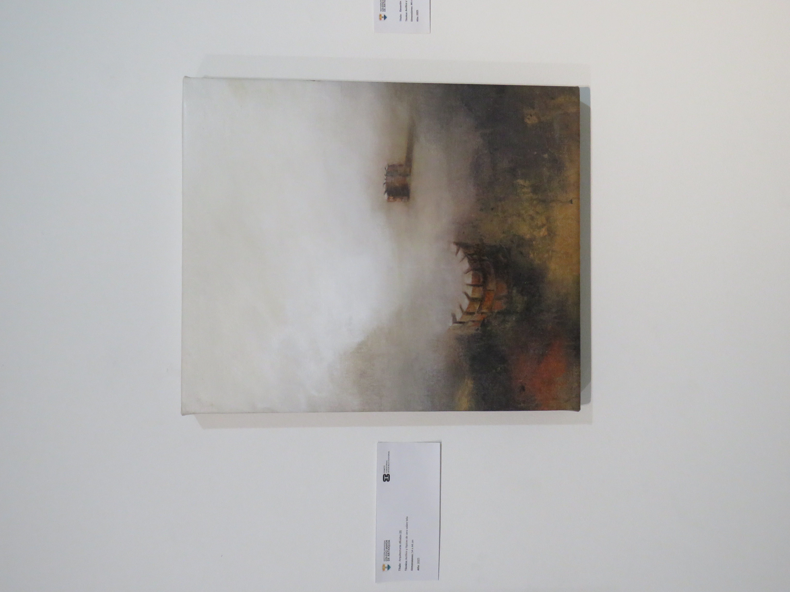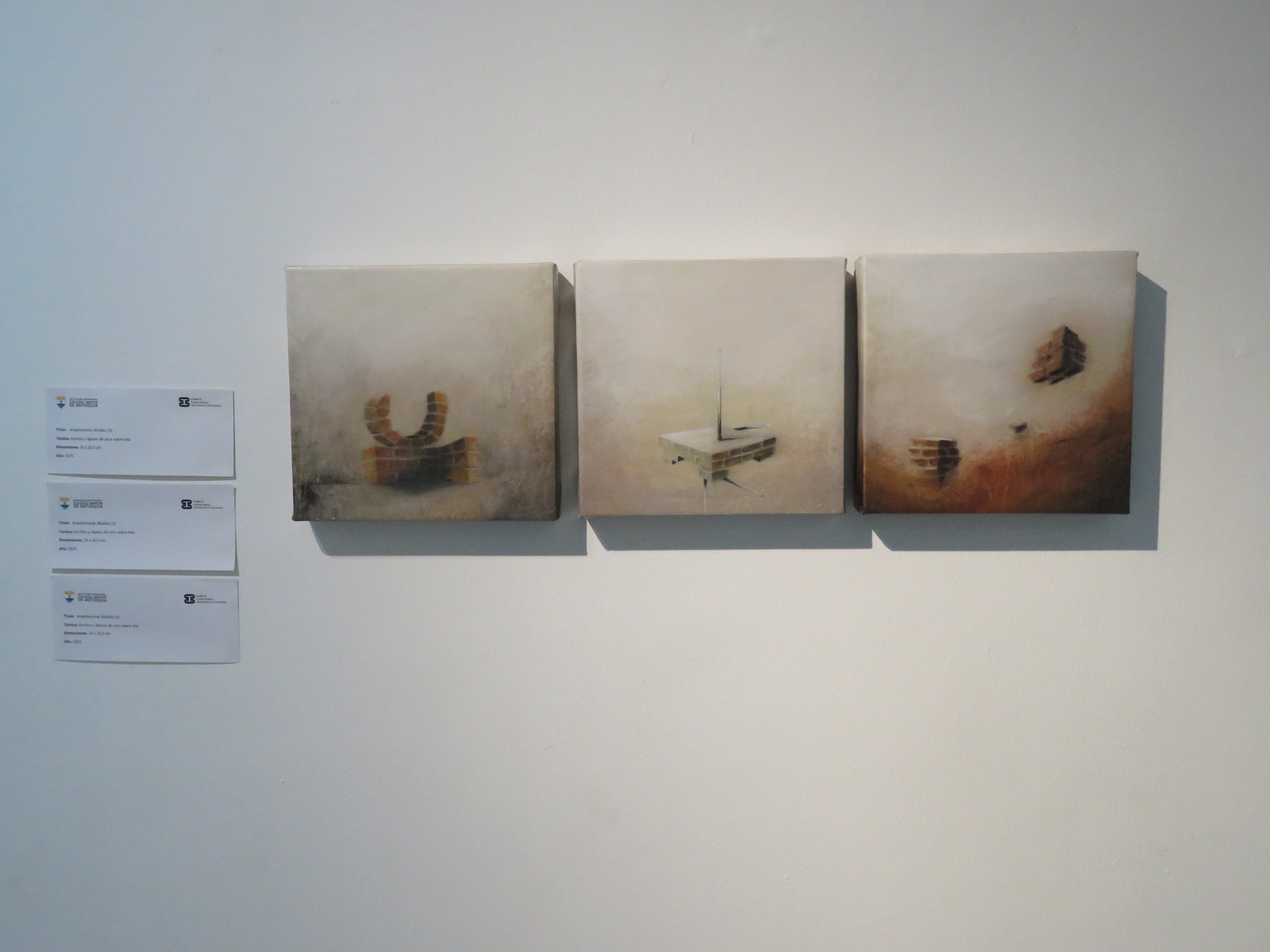 En esta exposición, las arquitecturas se presentan como estructuras en tránsito: se diluyen entre capas de color, líneas difusas y transparencias que sugieren tanto la permanencia como la fragilidad de lo construido. Cada obra se convierte en un espacio de resonancia donde lo visible y lo ausente dialogan, invitando al espectador a reconstruir, desde su propia memoria, aquello que se insinúa.