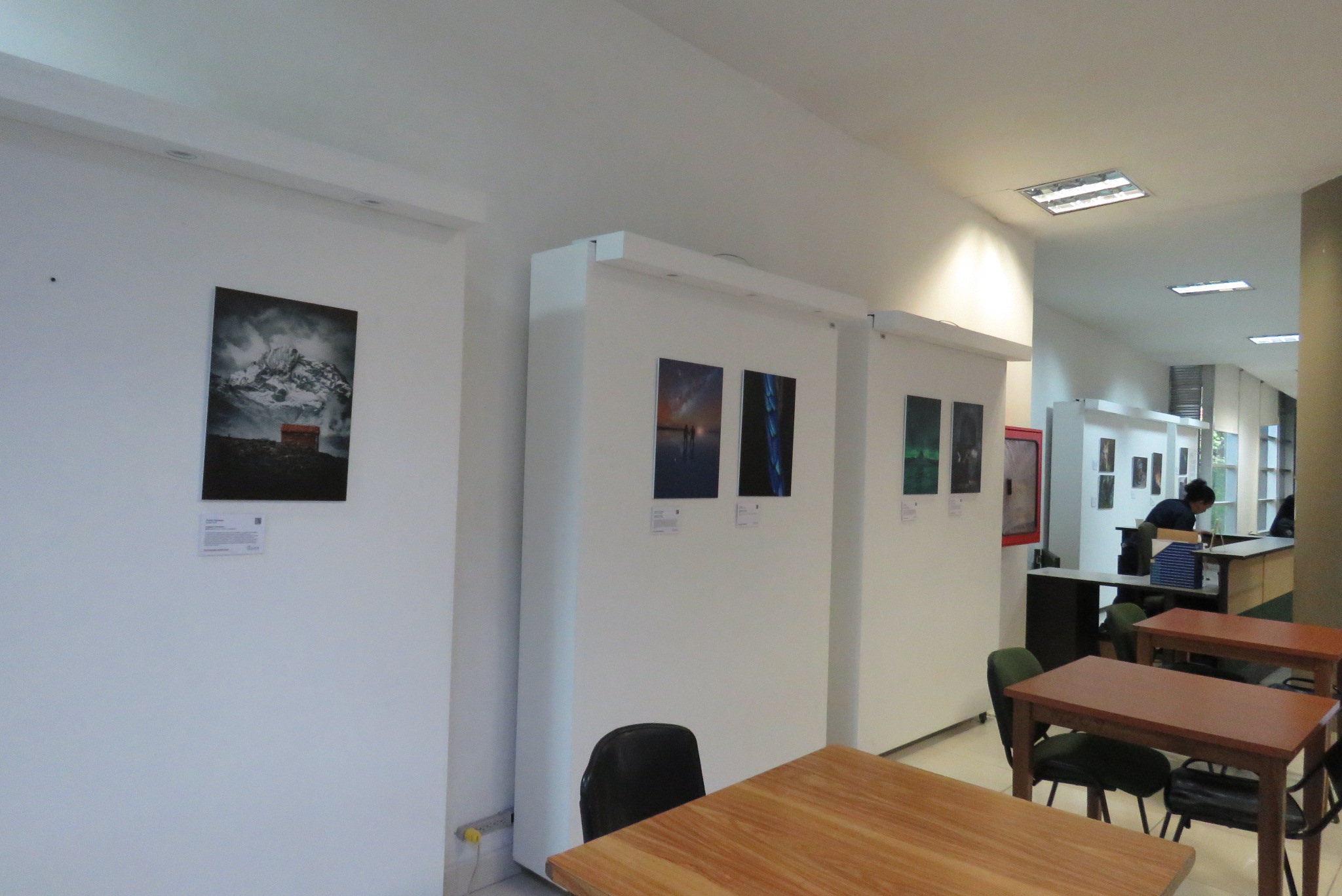 Sala de exposiciones Maestro León Posada Saldarriaga, segundo piso de la biblioteca Teresa Santamaría de González.