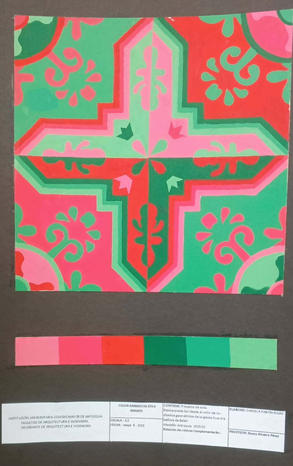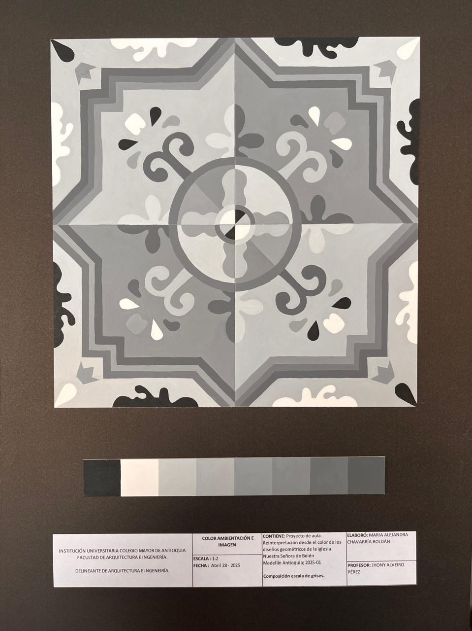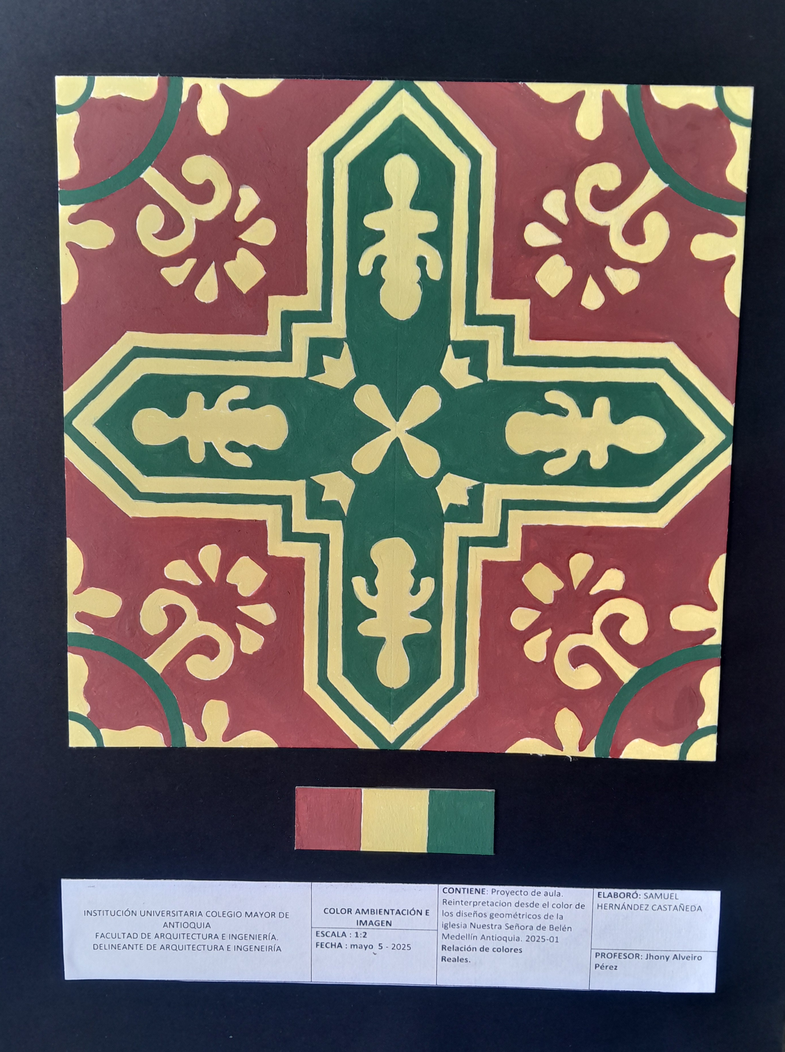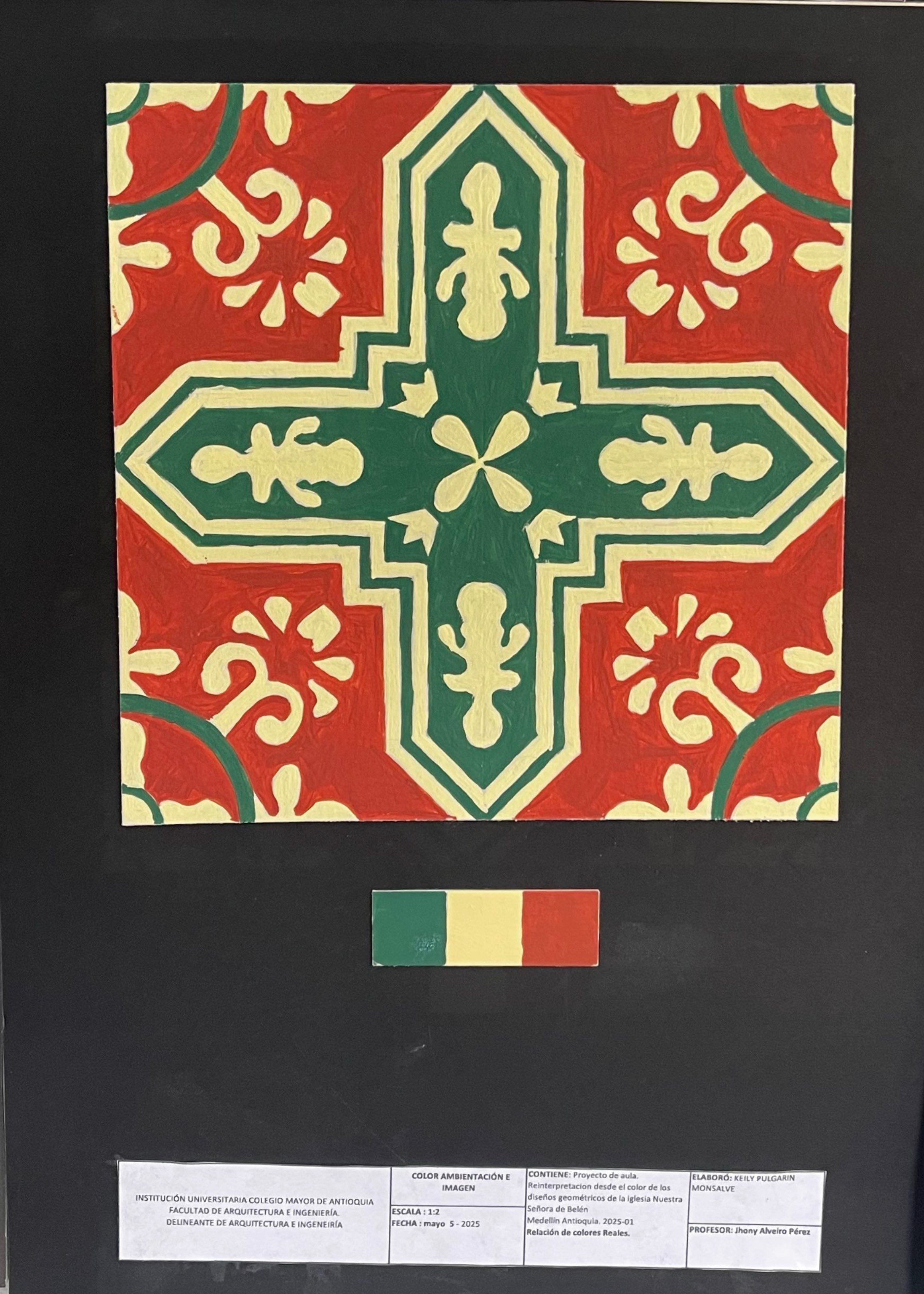 Esta exposición parte de un ejercicio académico y proyecto de aula, donde se plantea la identificación, reinterpretación y ambientación desde el color de los diseños de los pisos de la Iglesia de Nuestra Señora de Belén de la ciudad de Medellín Antioquia.