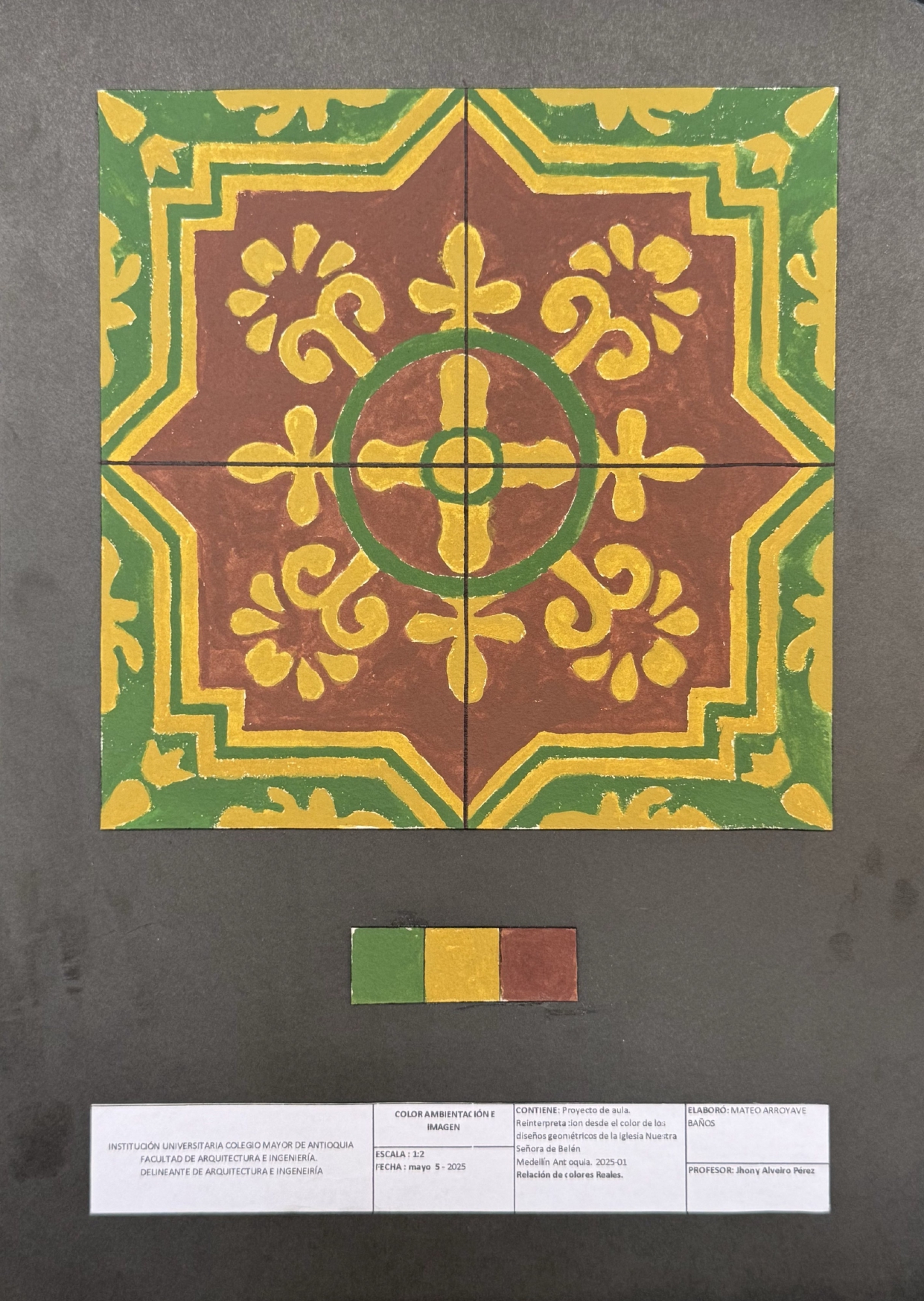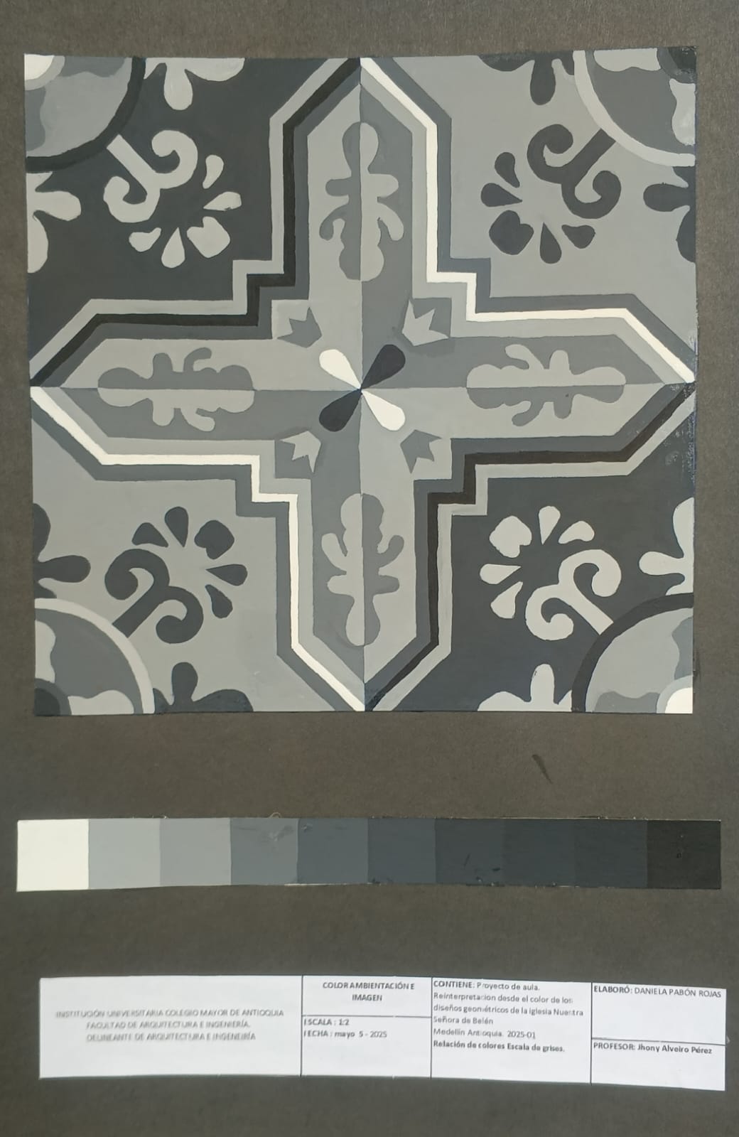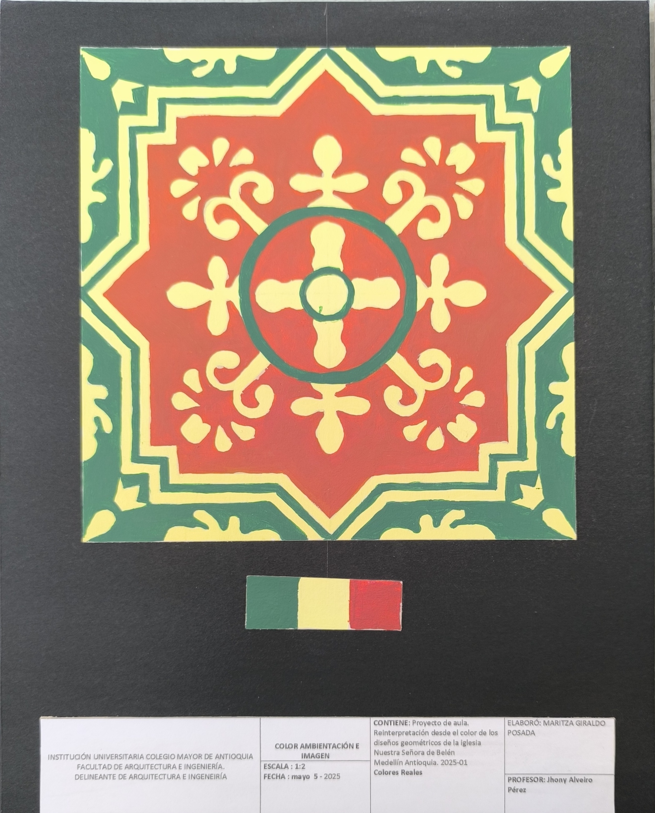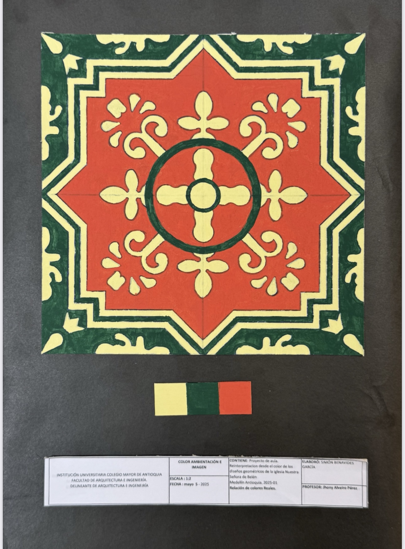 Esta exposición parte de un ejercicio académico y proyecto de aula, donde se plantea la identificación, reinterpretación y ambientación desde el color de los diseños de los pisos de la Iglesia de Nuestra Señora de Belén de la ciudad de Medellín Antioquia.