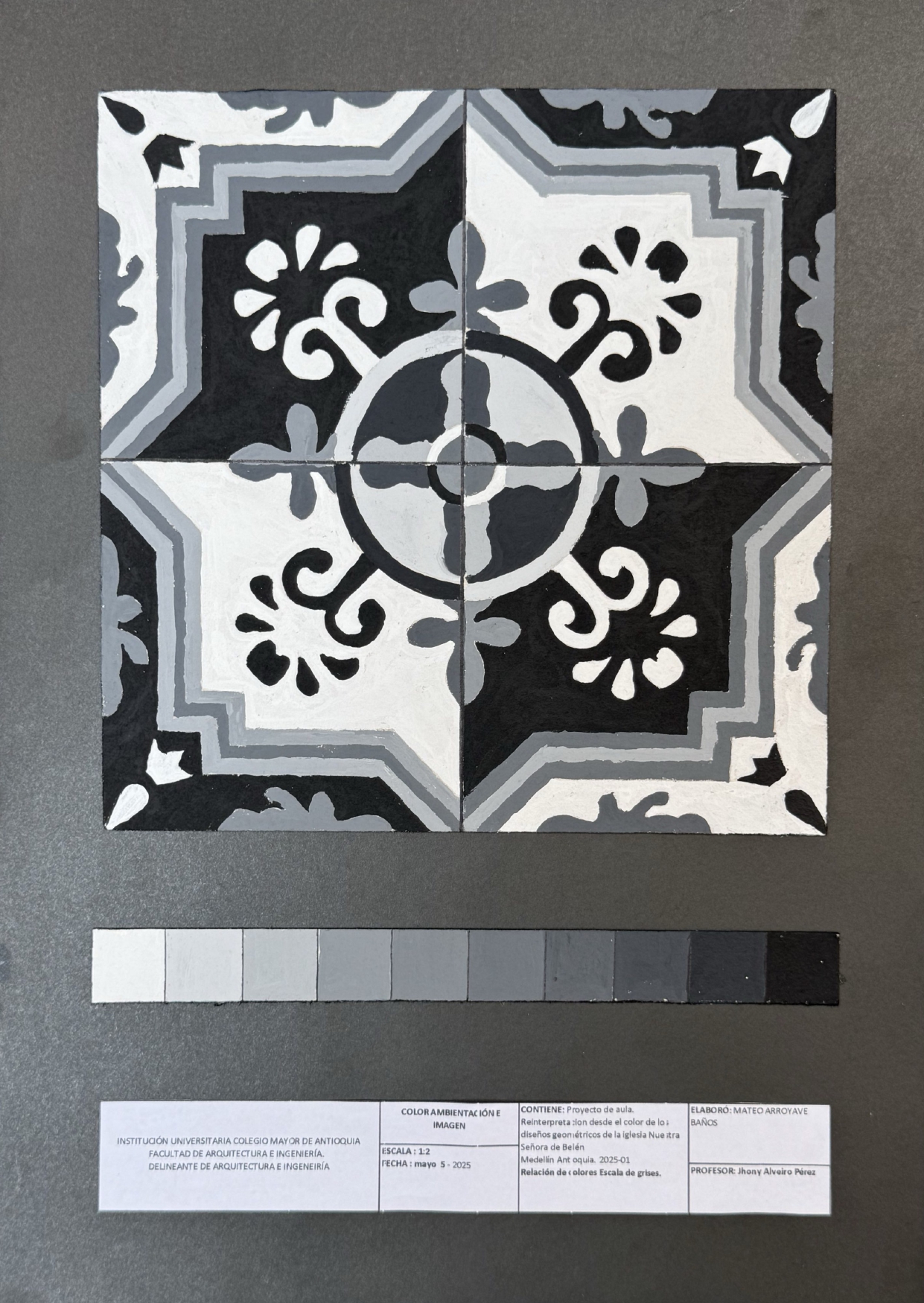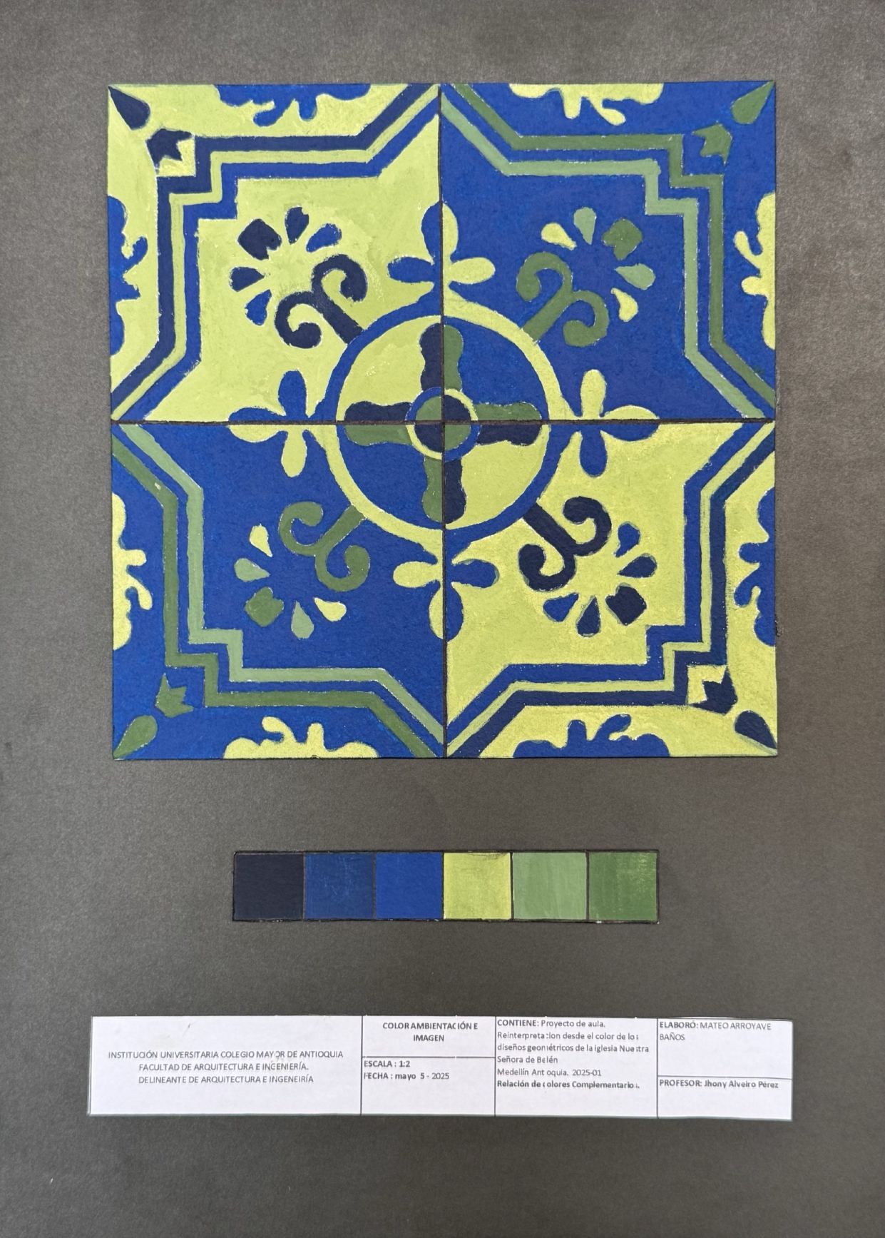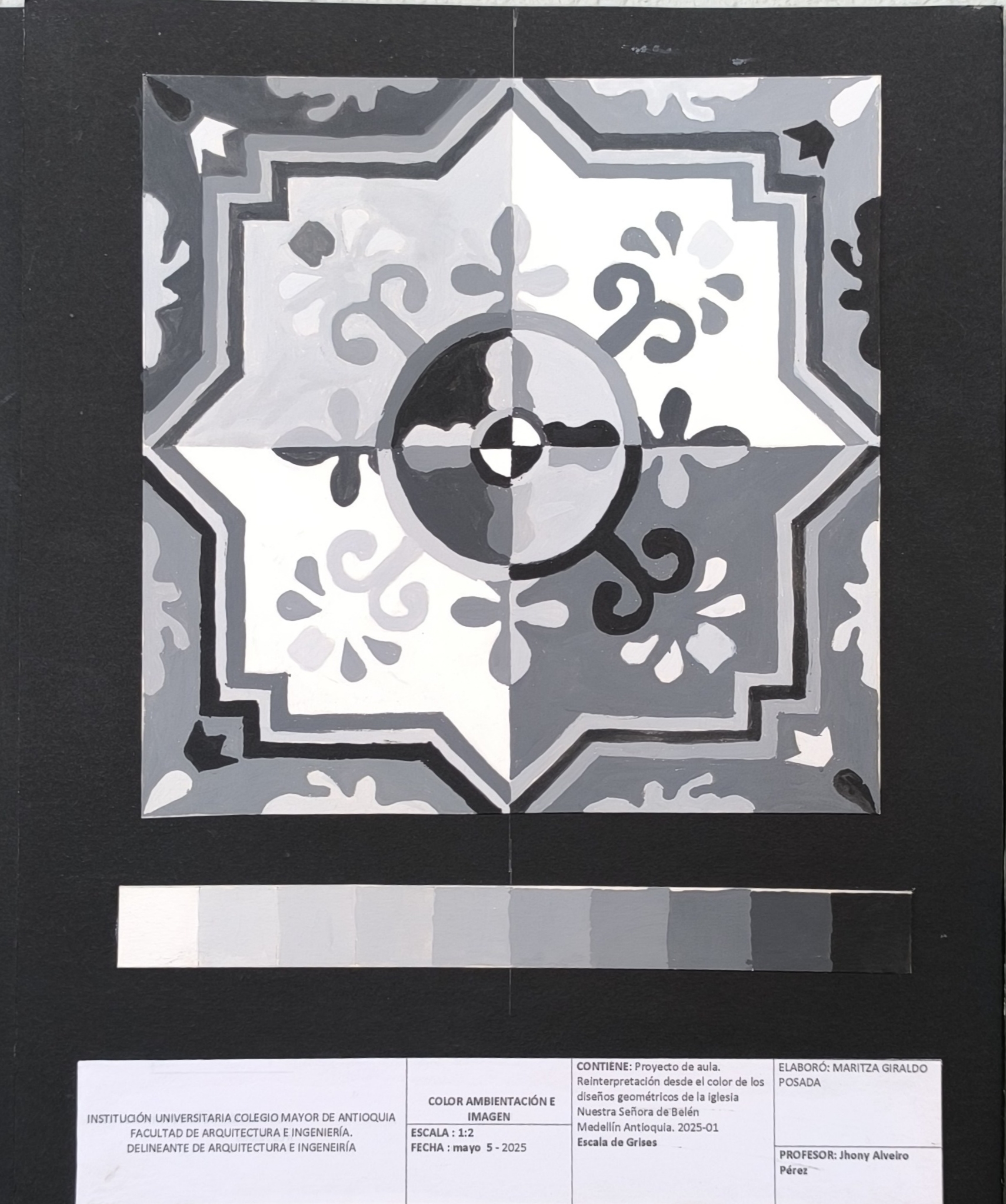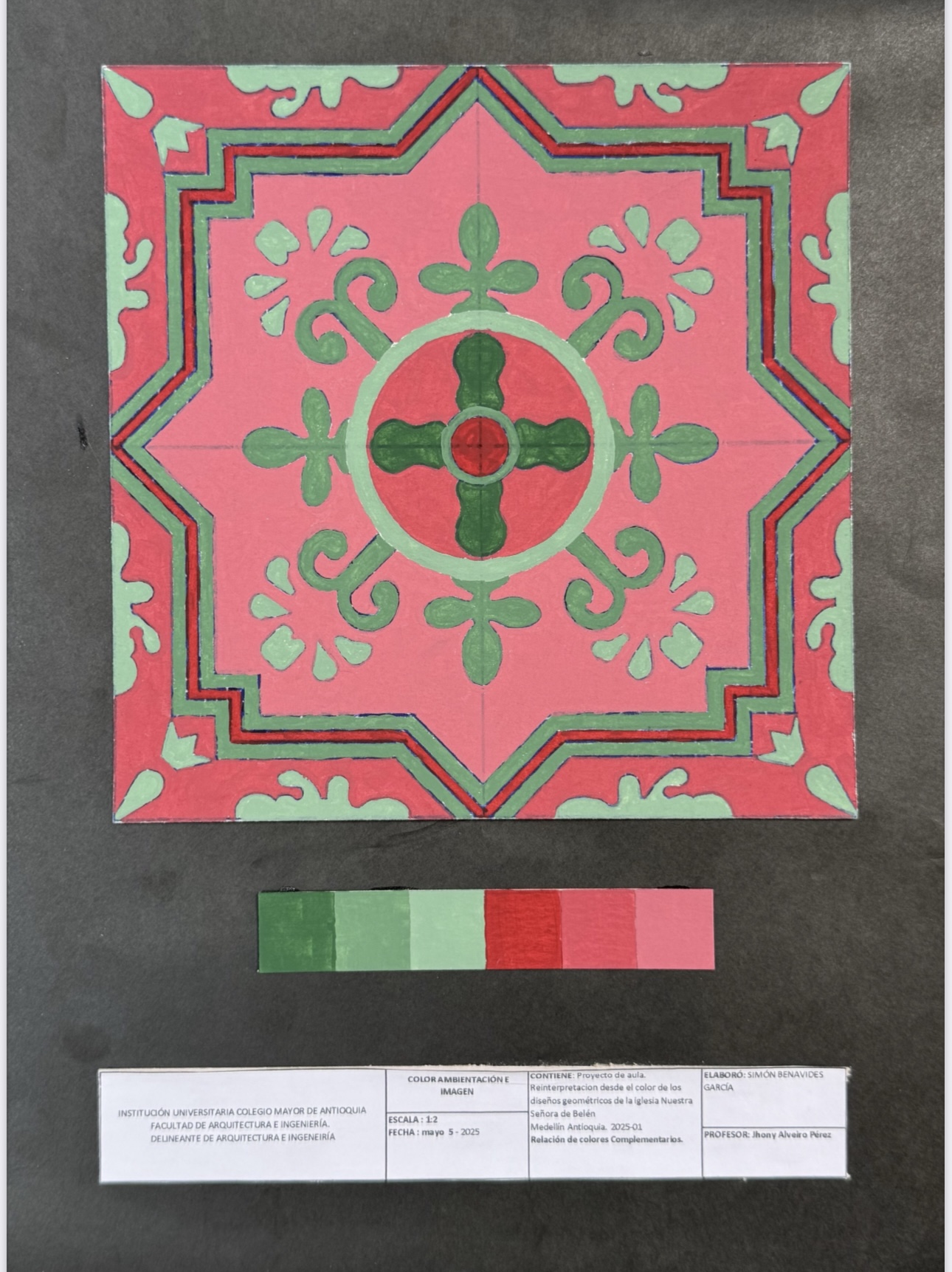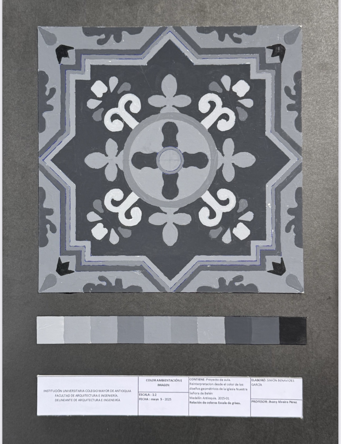 En los años 2022, 2023, y 2024 se realizó un trabajo similar con algunos diseños de varios templos de Antioquia, en esta ocasión se utilizará otro de los diseños de los pisos de baldosa hidráulica que hacen parte del conjunto que conforma los pisos del templo de Nuestra señora de Belén.