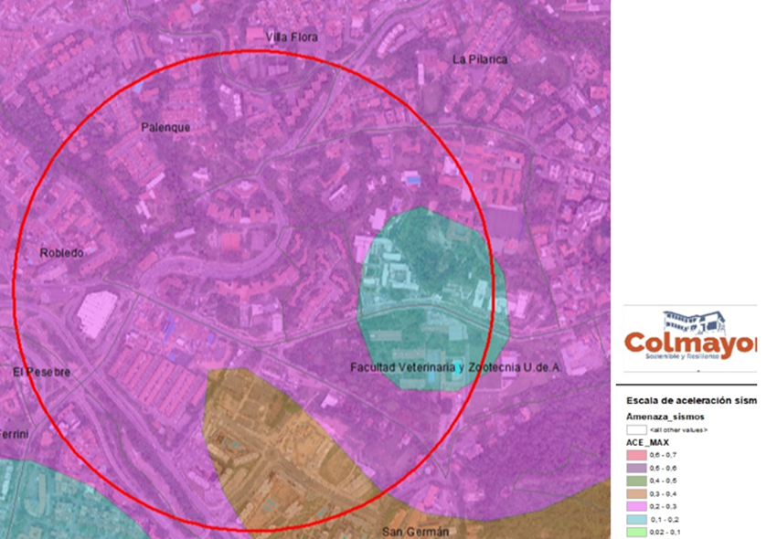 Con el fin de establecer con mayor detalle las características de los fenómenos físicos y los peligros asociados al entorno de la Institución, se tomó un radio de influencia de 500m.