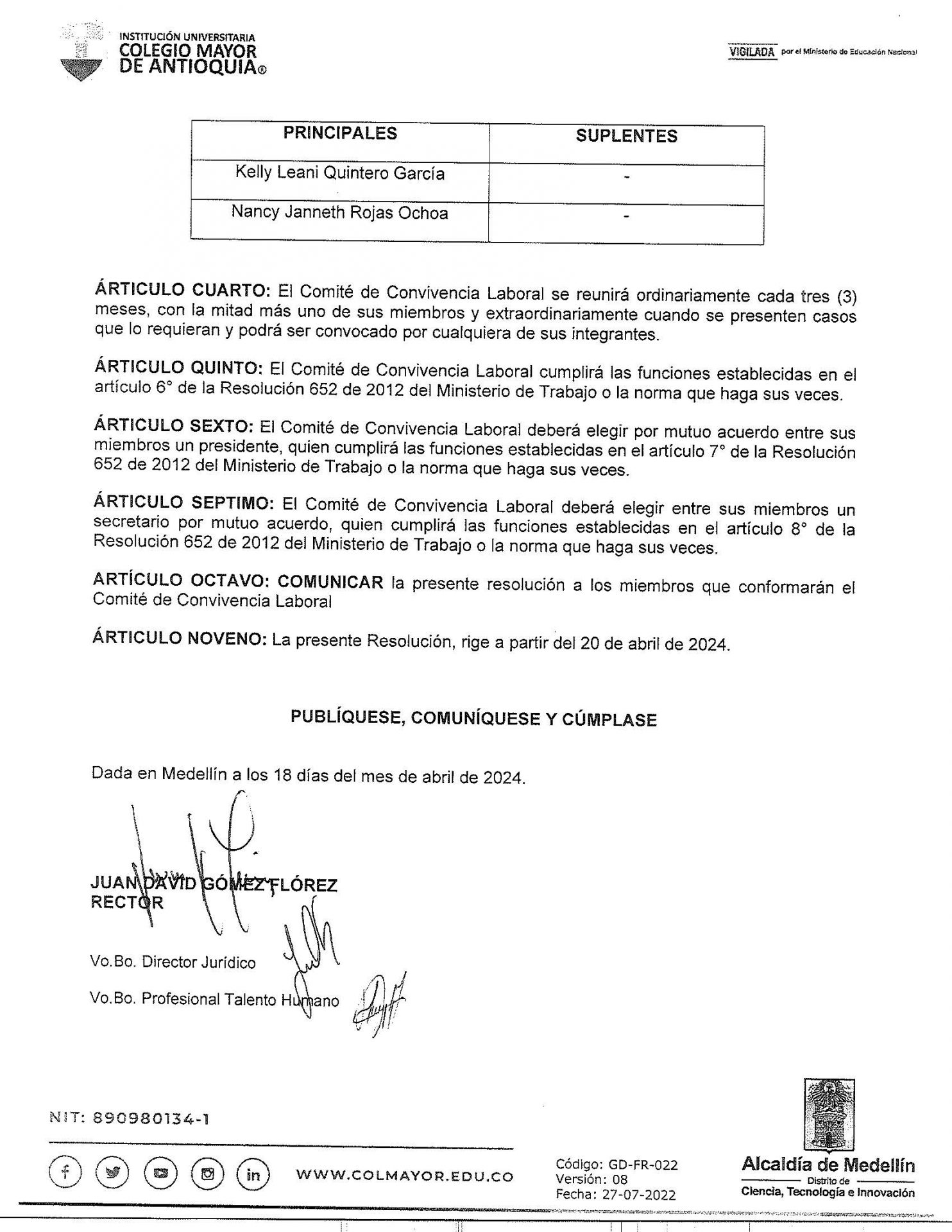 Conformación del Comité de Convivencia Laboral de la institución Comunicados abril 19, 2024. Haz clic aquí para conocer la resolución Anterior Siguiente