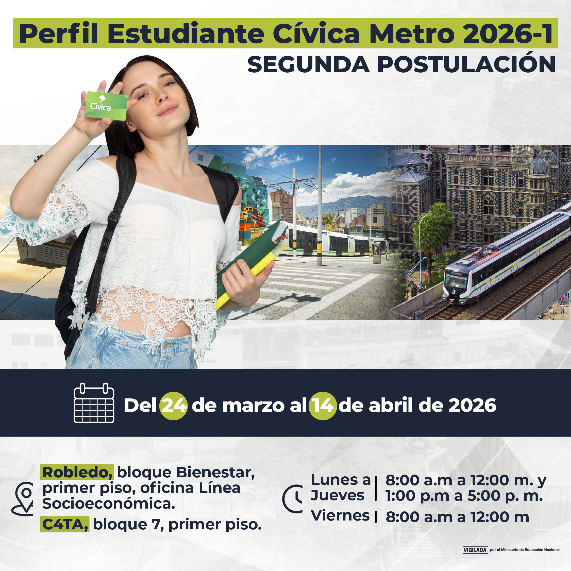 Bienestar Convocatorias General Noticias Perfil Estudiante Cívica Metro 2026-1 enero 19, 2026. Conoce los requisitos.