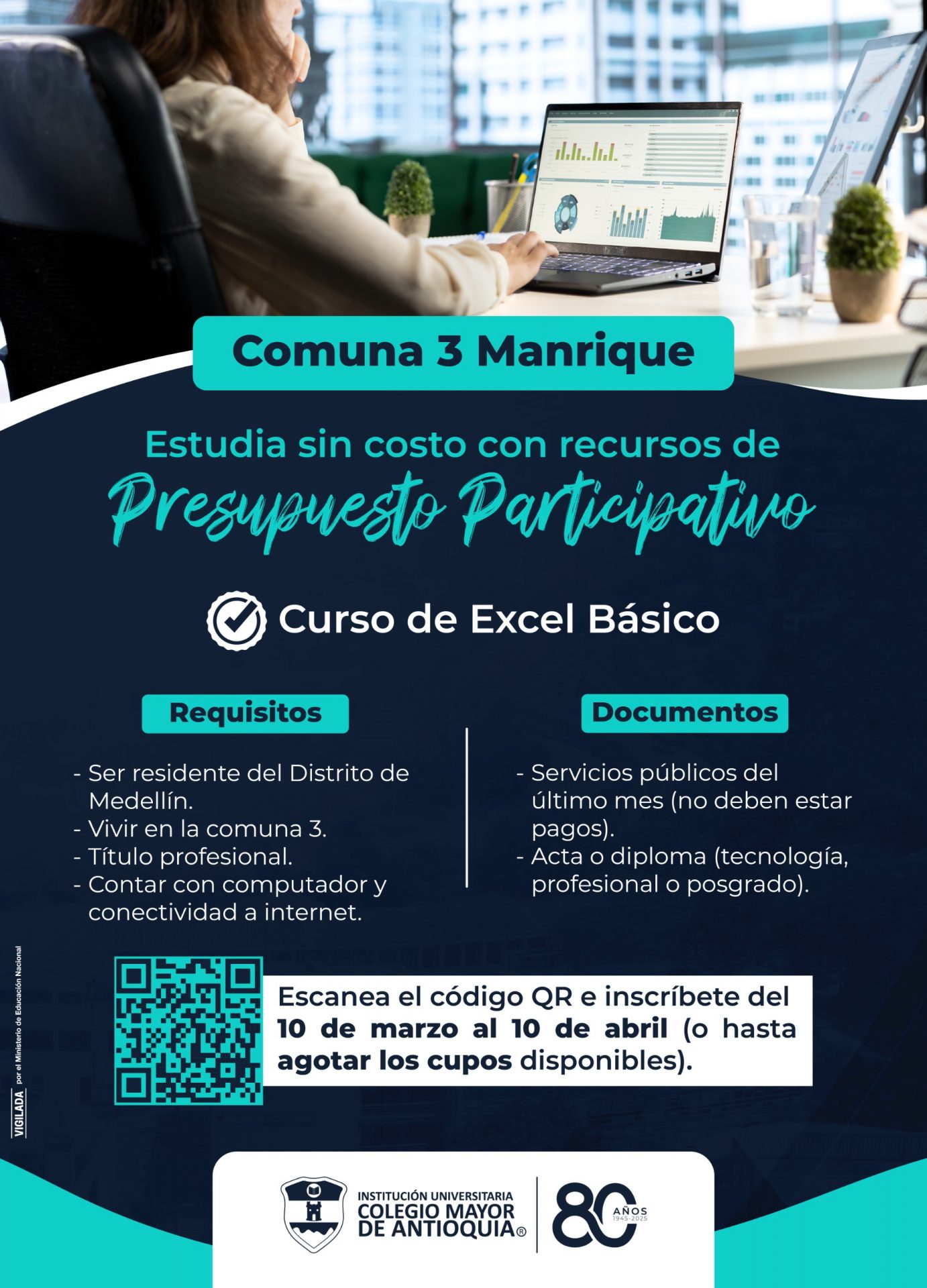Comuna 3 Manrique – Estudia sin costo con recursos de PP, un curso en Excel Básico a través del área de Extensión Académica