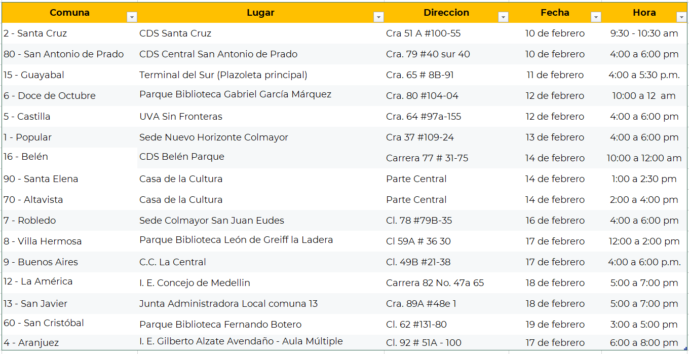 Entre el 10 y el 18 de febrero, Colmayor recorrerá las comunas y corregimientos de Medellín para socializar la oferta de educación superior sin costo. Conoce las fechas para tu comuna o corregimiento aquí: