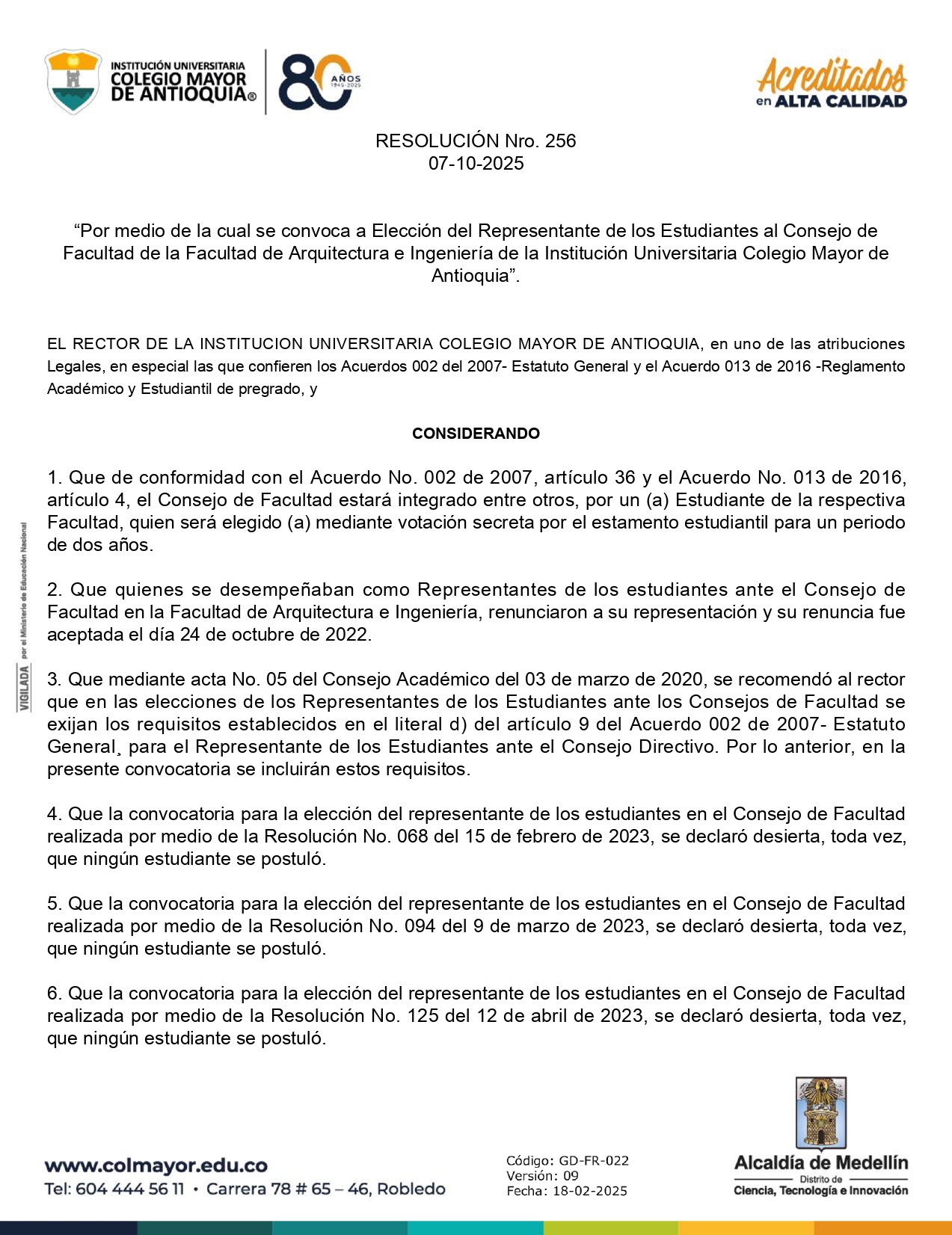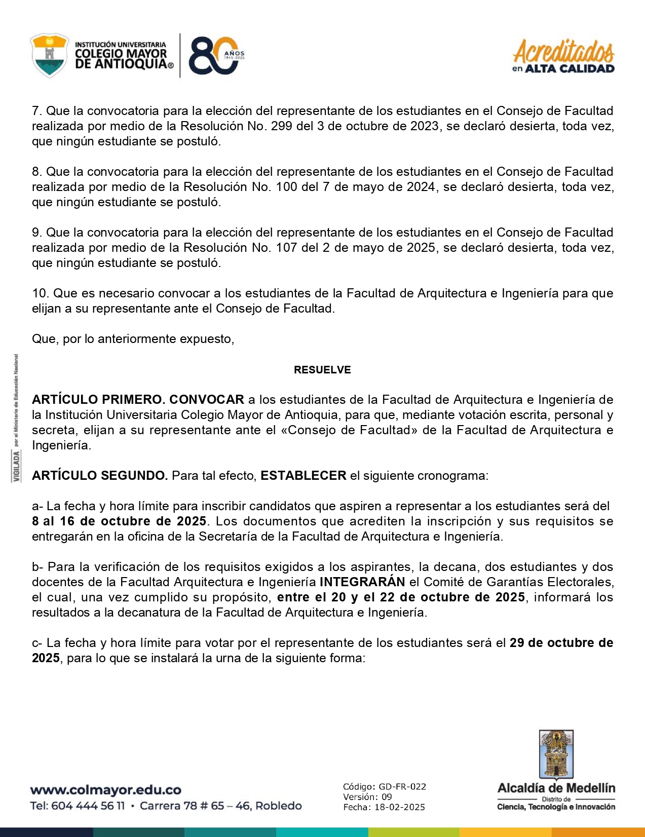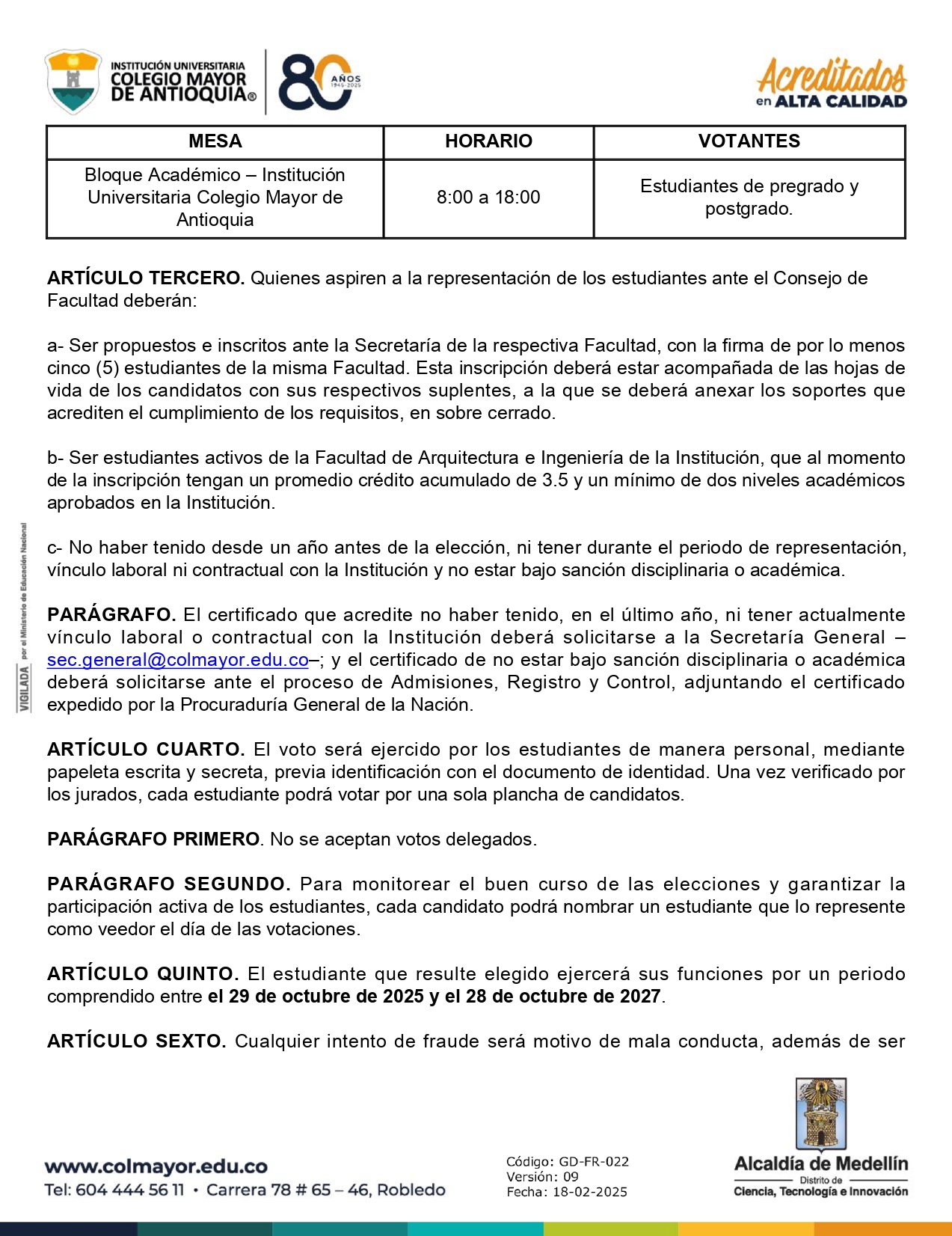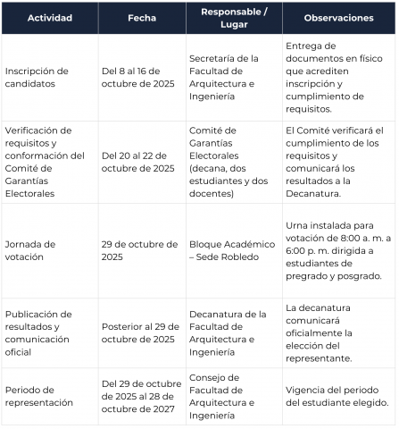 Convocatoria abierta para la elección del representante de los estudiantes ante el Consejo de Facultad de Arquitectura e Ingeniería