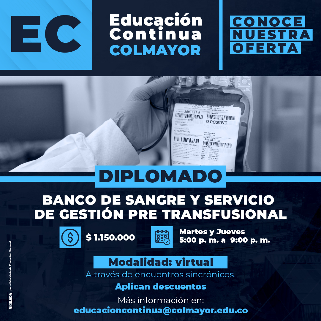Educación Continua General Noticias Diplomado en banco de sangre y servicio de gestión pre transfusional abril 20, 2026. Conoce los módulos e inscríbete.