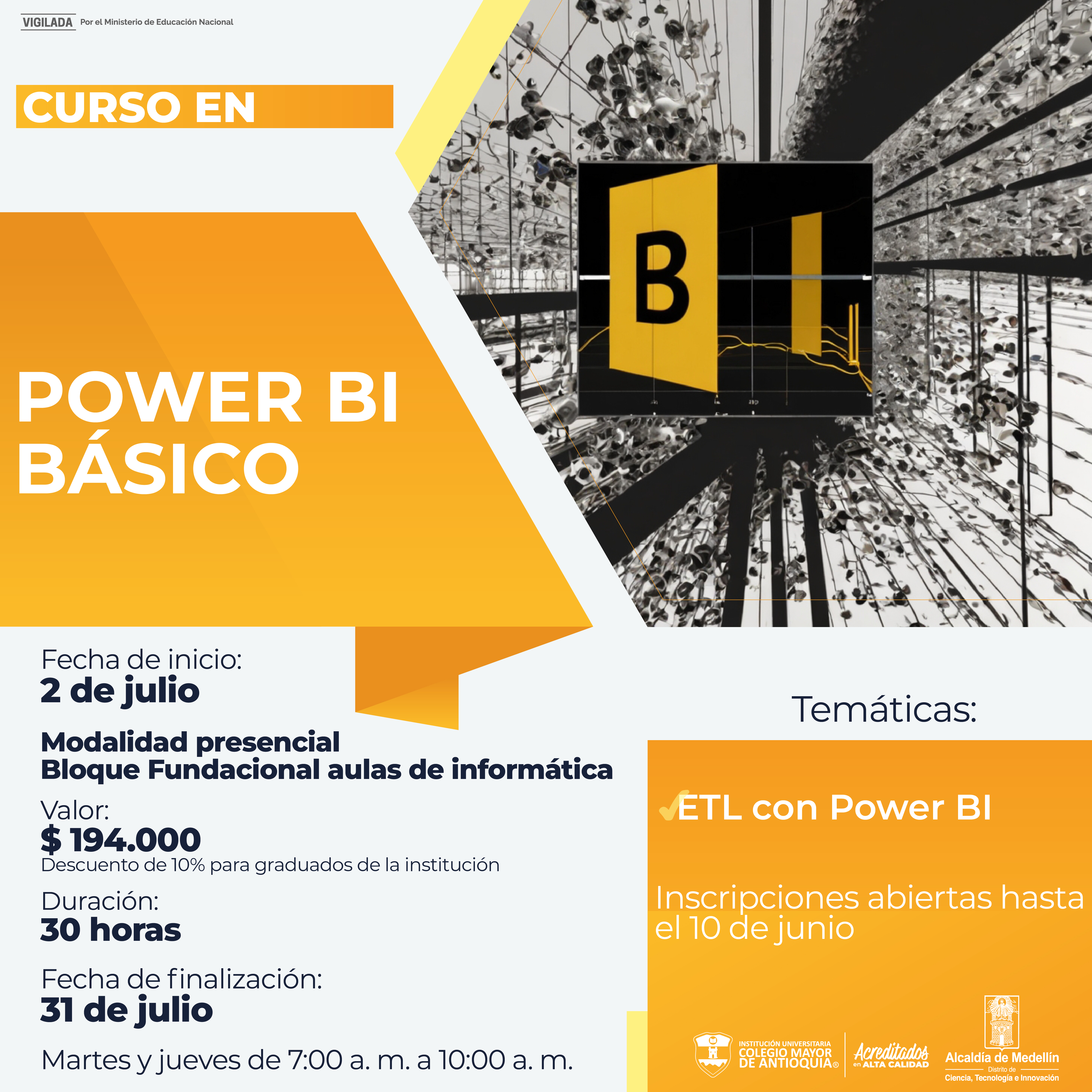Educación Continua General Noticias Curso de Power BI Básico mayo 29, 2024. Inscríbete hasta el 10 de junio.