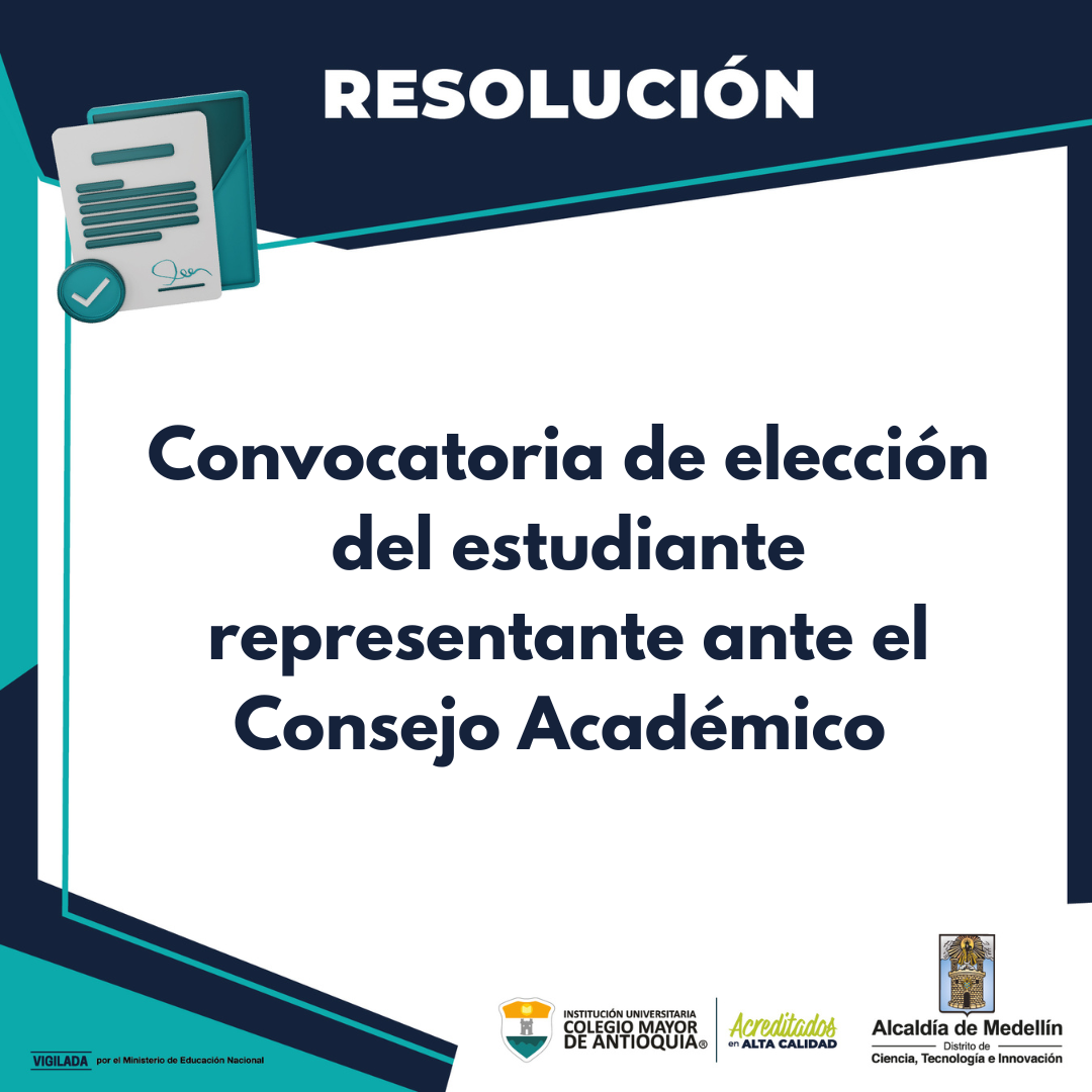 Facultades General Noticias Convocatoria de elección del estudiante representante ante el Consejo Académico octubre 3, 2023. Conoce la resolución 298