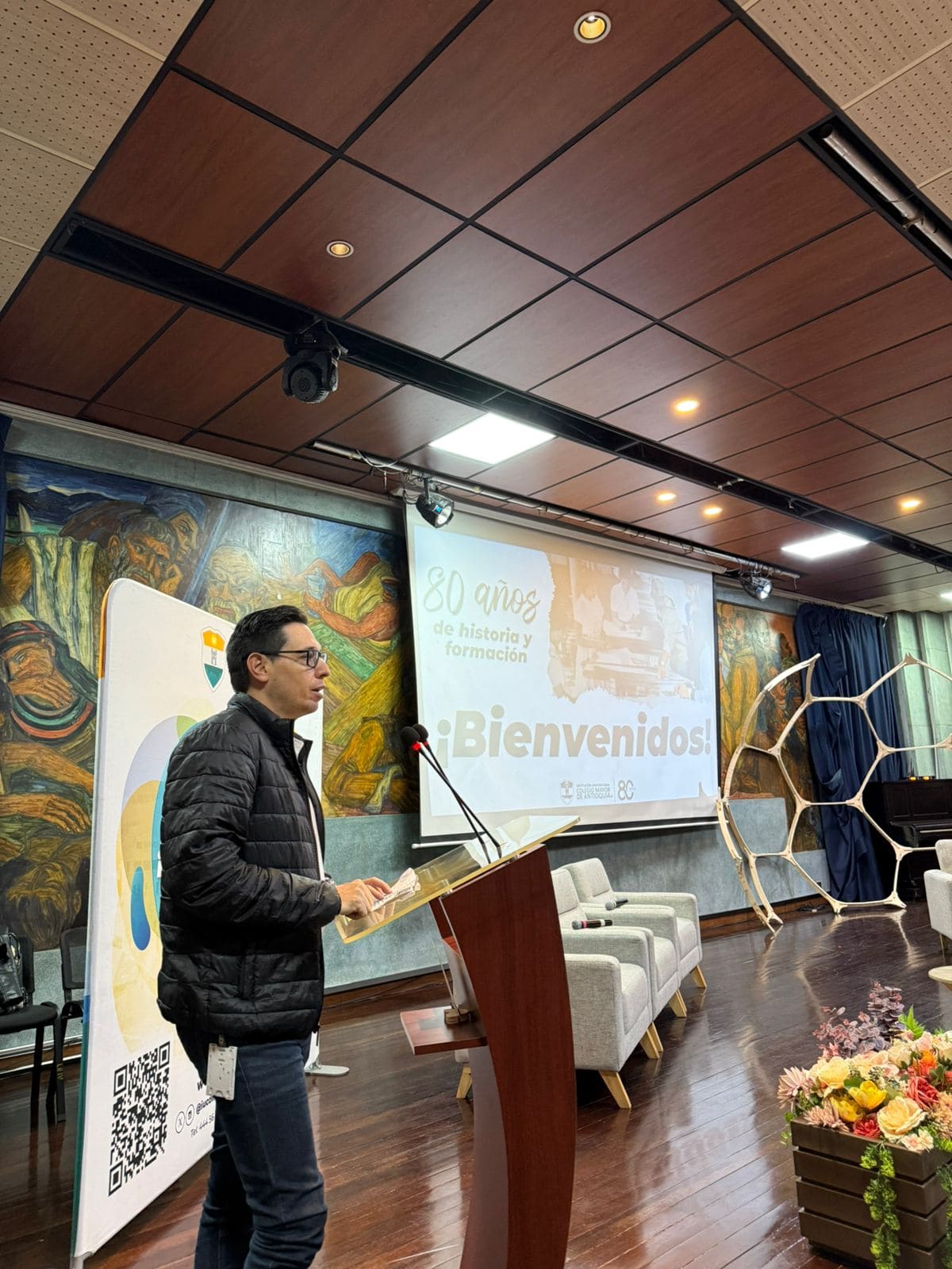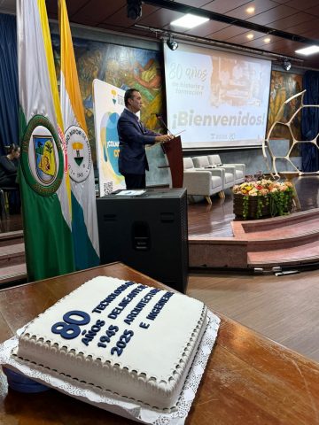 El decano de la Facultad de Arquitectura e Ingeniería, Carlos Andrés Medina Restrepo, intervino resaltando el papel protagónico que ha tenido el programa en la formación técnica y humana de miles de profesionales durante ocho décadas.