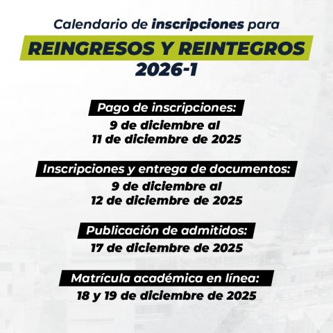 Conoce la guía de inscripción para Reingresos y Reintegros 2026-1 General diciembre 2, 2025. REINTEGRO:Si su último estado de matrícula fue cancelación de semestre o no renovación de Matrícula desde de 2023-2. REINGRESO:Si su último estado de matrícula fue excluido por bajo rendimiento desde de 2023-2. Haz clic aquí para conocer la guía de inscripción Anterior