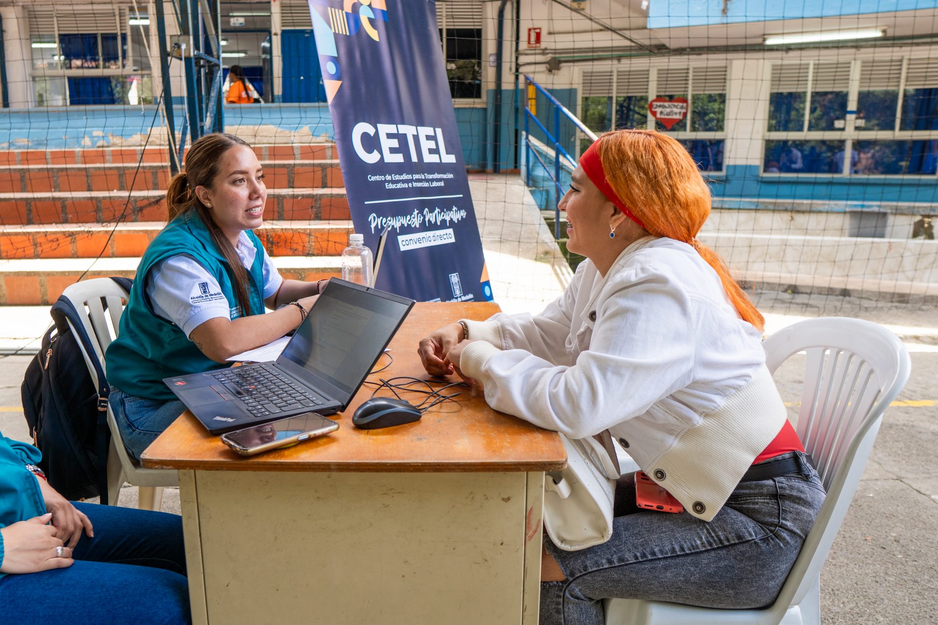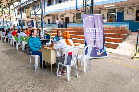 La Institución Universitaria Colegio Mayor de Antioquia, a través del Centro de Estudios para la Transformación Educativa e Inserción Laboral – CETEL, realizó el día jueves 16 de octubre la tercera Feria de Empleo y Servicios en la Franja 1, que reunió a 10 empresas de servicios temporales con oportunidades laborales vigentes dirigidas a personas con y sin experiencia, así como a bachilleres, técnicos, tecnólogos y profesionales interesados en vincularse al mercado laboral.
