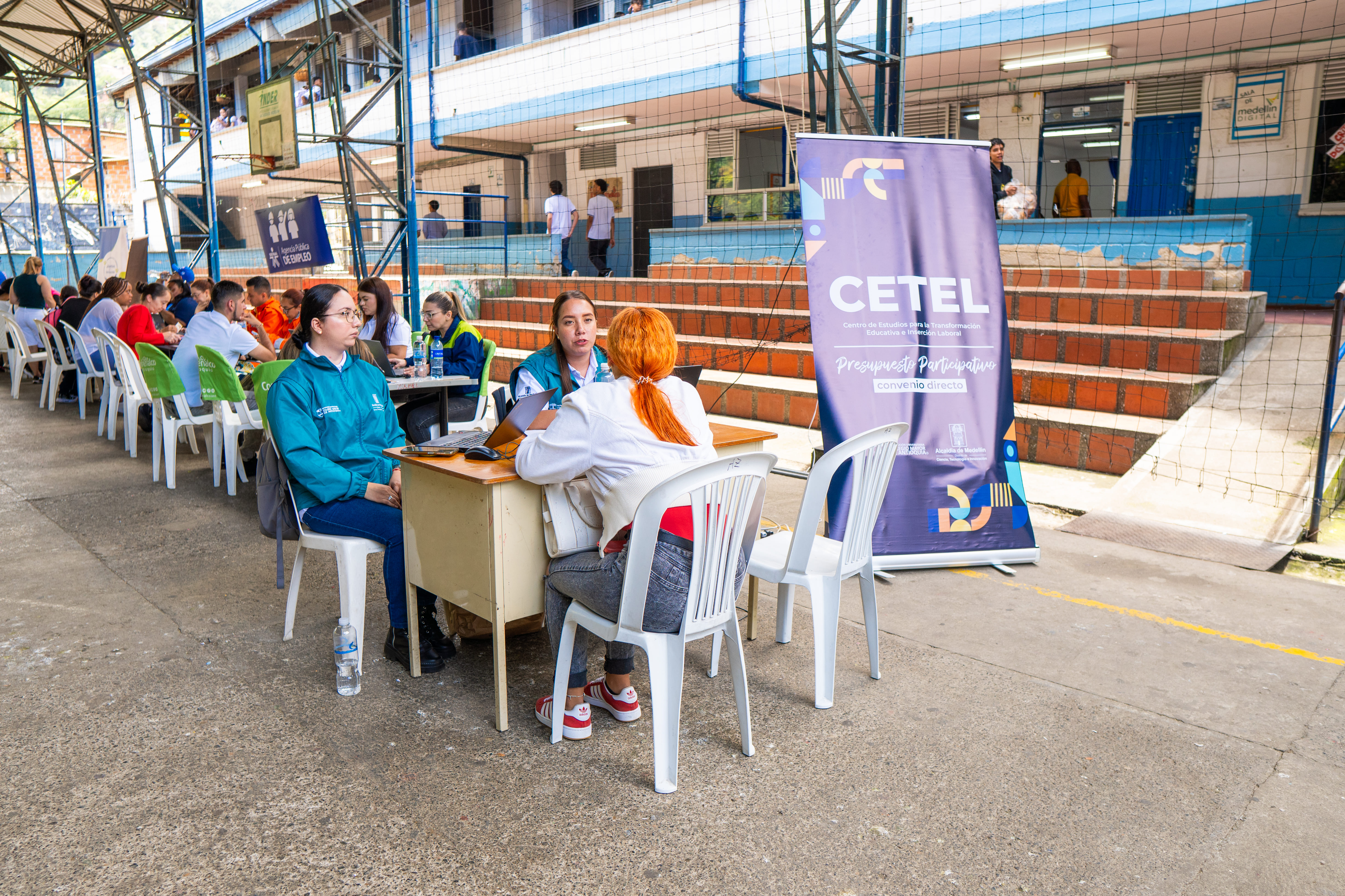 La feria también contó con un puesto de información sobre las tres instituciones de educación superior de orden distrital – la Institución Universitaria Colegio Mayor de Antioquia, el ITM y el Pascual Bravo – donde se brindó asesorías sobre su oferta académica y sobre el acceso a becas de Presupuesto Participativo (PP) en modalidad de convenio directo, fortaleciendo así las oportunidades de formación y desarrollo para los habitantes del territorio.