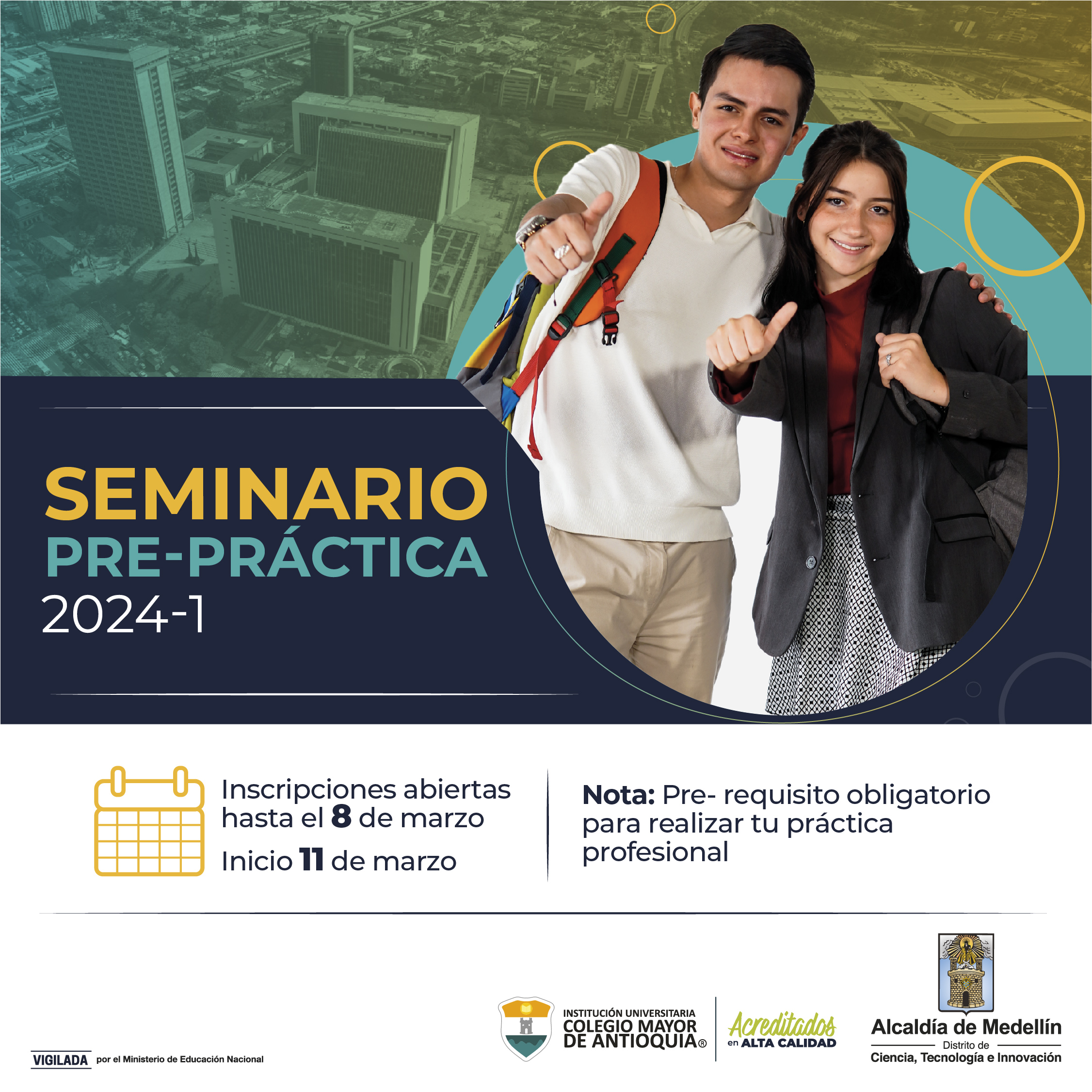 General Noticias Seminario pre-práctica febrero 20, 2024. Pre-requisitos obligatorio para realizar la práctica laboral.