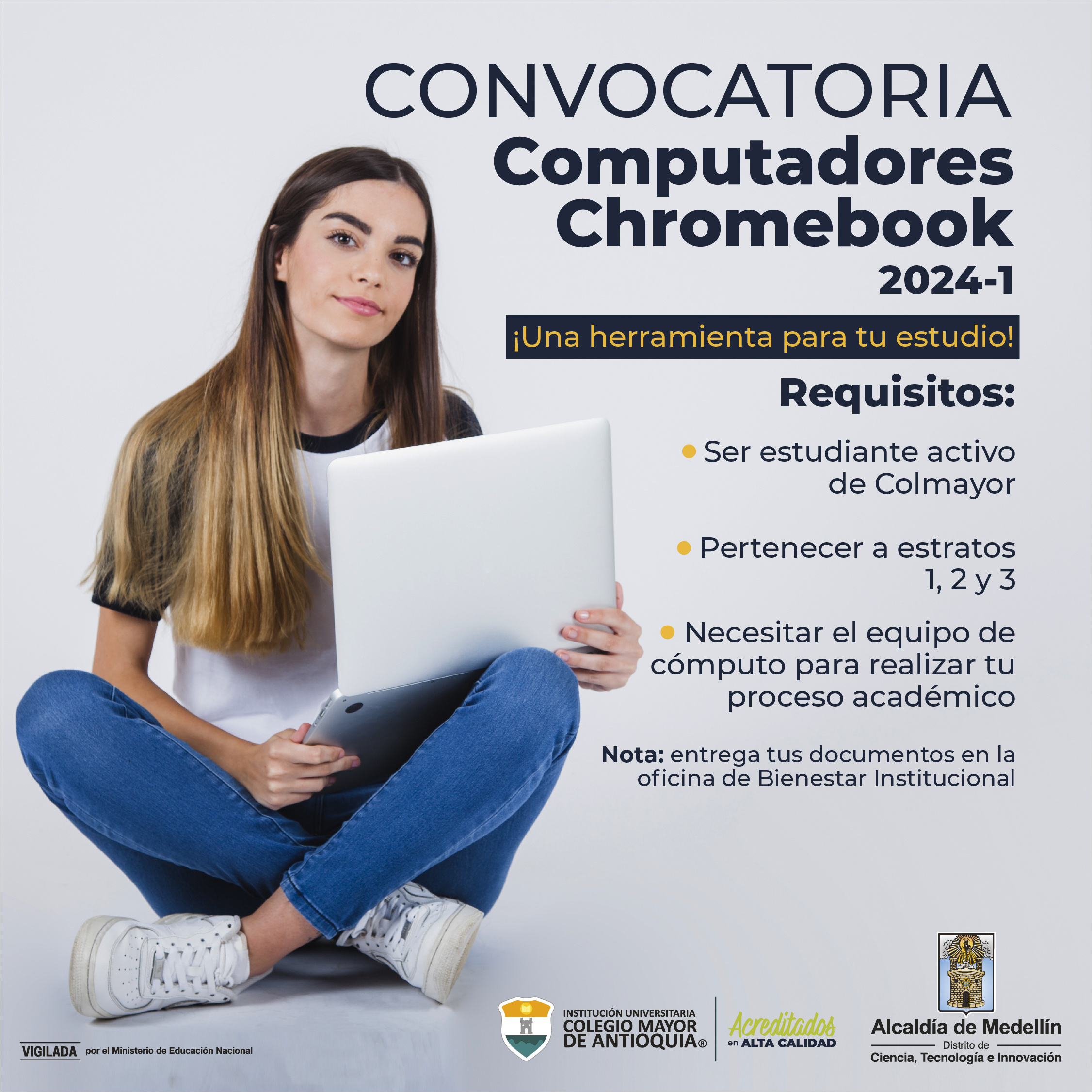Bienestar Convocatorias General Noticias Convocatoria de préstamo de computadores Chrombook febrero 6, 2024. Conoce los requisitos.