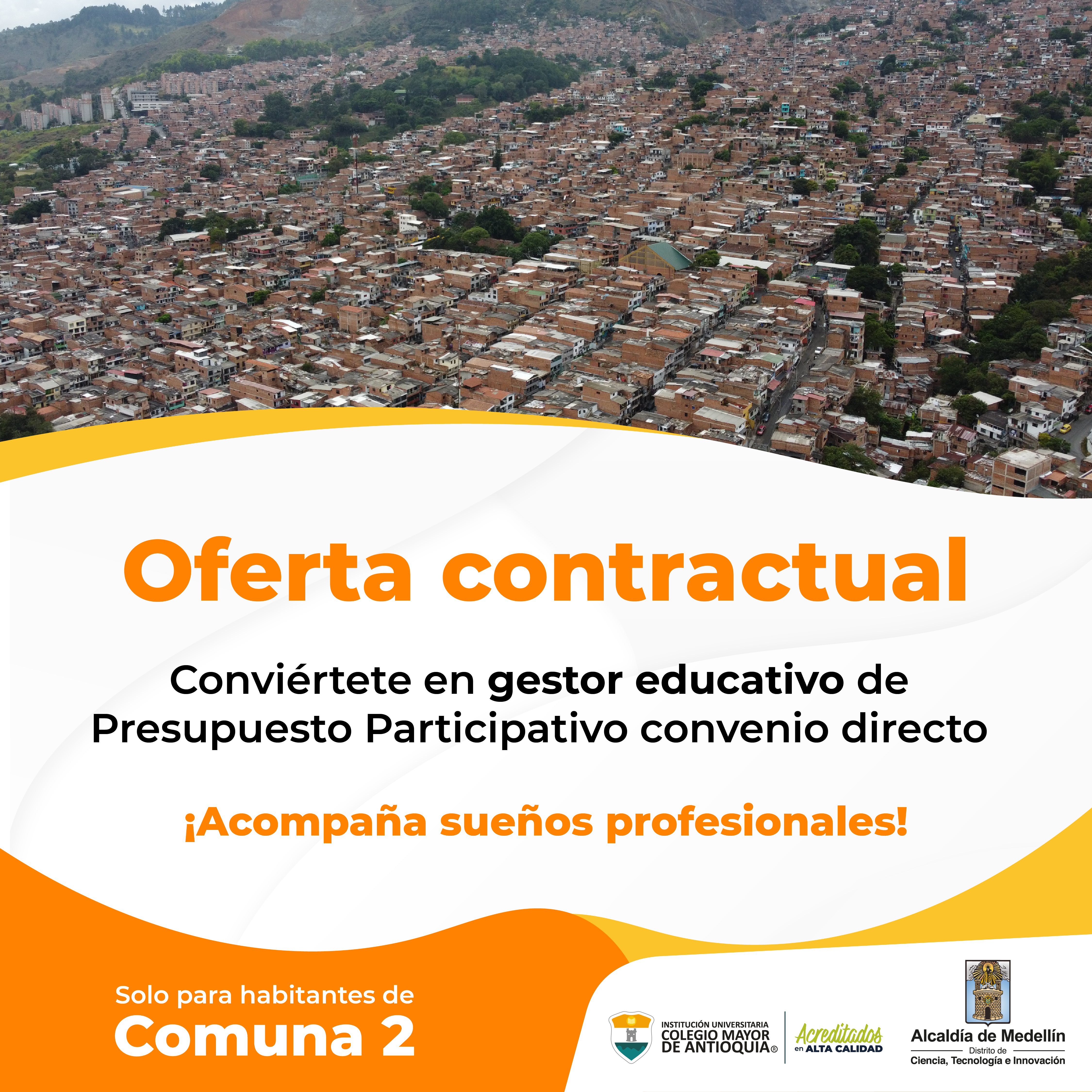 Convocatorias PP General Noticias Haz parte de nuestro equipo de trabajo. Conviértete en gestor o gestora educativa de la comuna 2 Santa Cruz febrero 6, 2024. Solo para habitantes de la comuna 2.