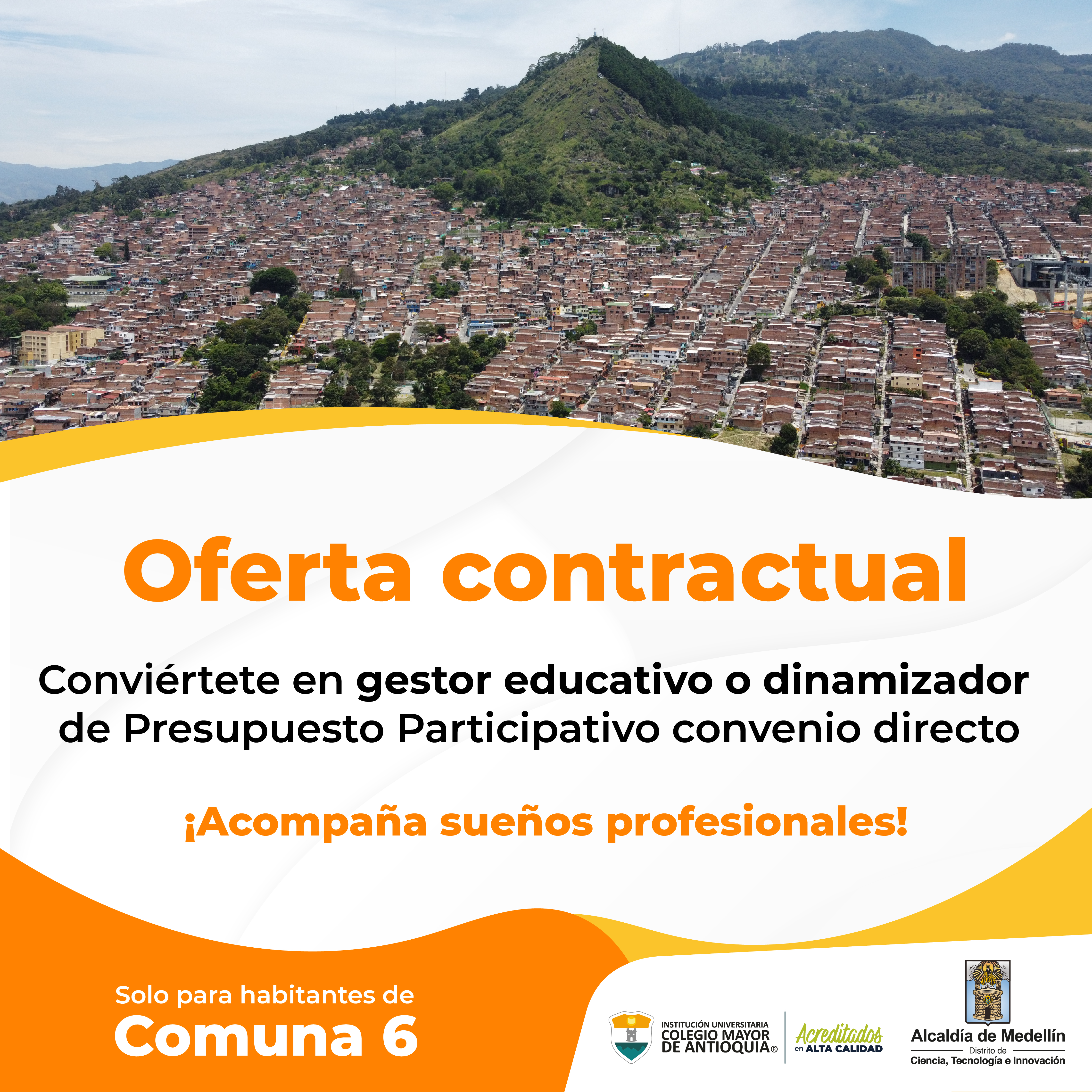 Convocatorias PP General Noticias Haz parte de nuestro equipo de trabajo. Conviértete en gestor educativo o dinamizador de la comuna 6 Doce de Octubre febrero 6, 2024. Solo para habitantes de la comuna 6.