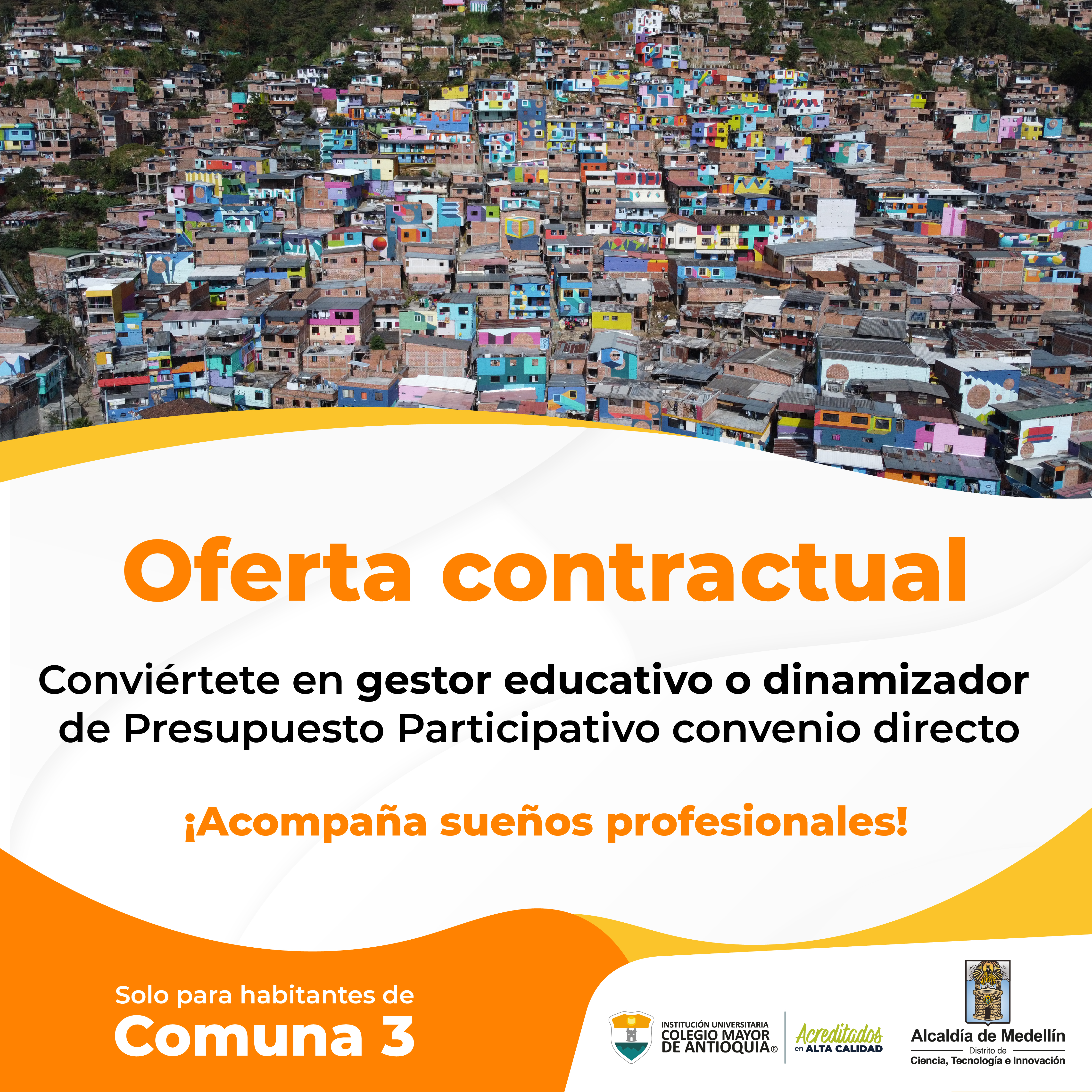 Convocatorias PP General Noticias Haz parte de nuestro equipo de trabajo. Conviértete en gestor educativo o dinamizador de la comuna 3 Manrique febrero 6, 2024. Solo para habitantes de la comuna 3.
