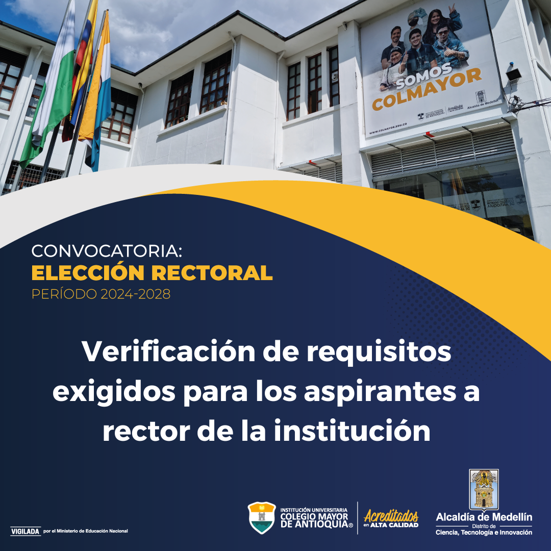 Convocatorias General Noticias Verificación de requisitos exigidos para los aspirantes a rector de la institución febrero 8, 2024. Conozca el acta de verificación de requisitos del Comité de Garantías.