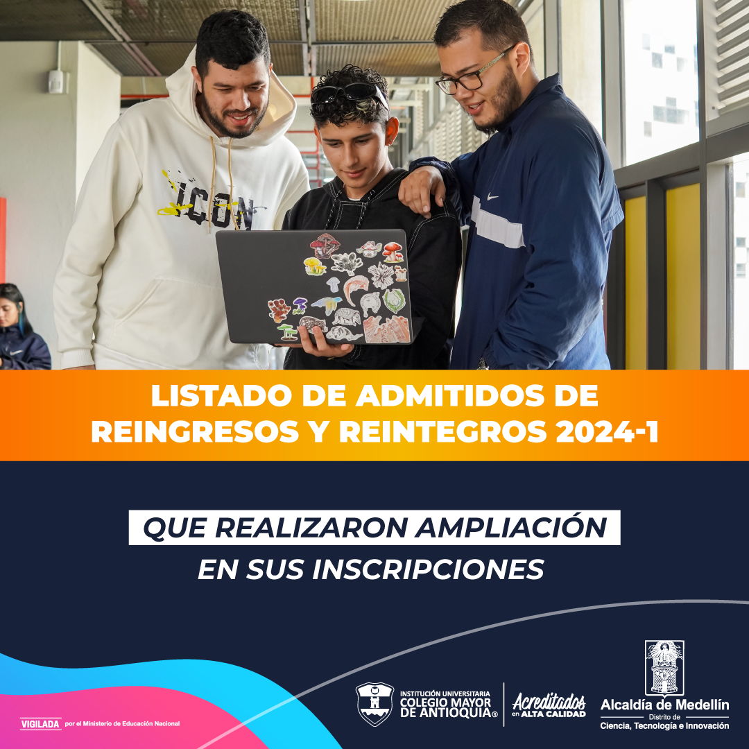 General Noticias Noticias admisiones Admitidos por reingreso y reintegro 2024-1 (ampliaciones) enero 23, 2024. Conoce los listados de admitidos.