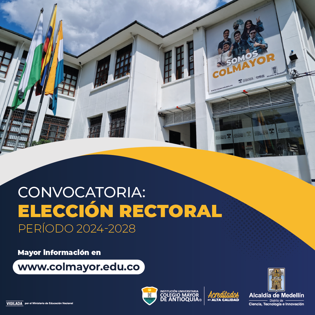 Convocatorias General Noticias Convocatoria de elección rectoral, período 2024-2028 enero 19, 2024. Conoce el acuerdo mediante el cual se determina el procedimiento de elección para el rector (a) de la Institución.