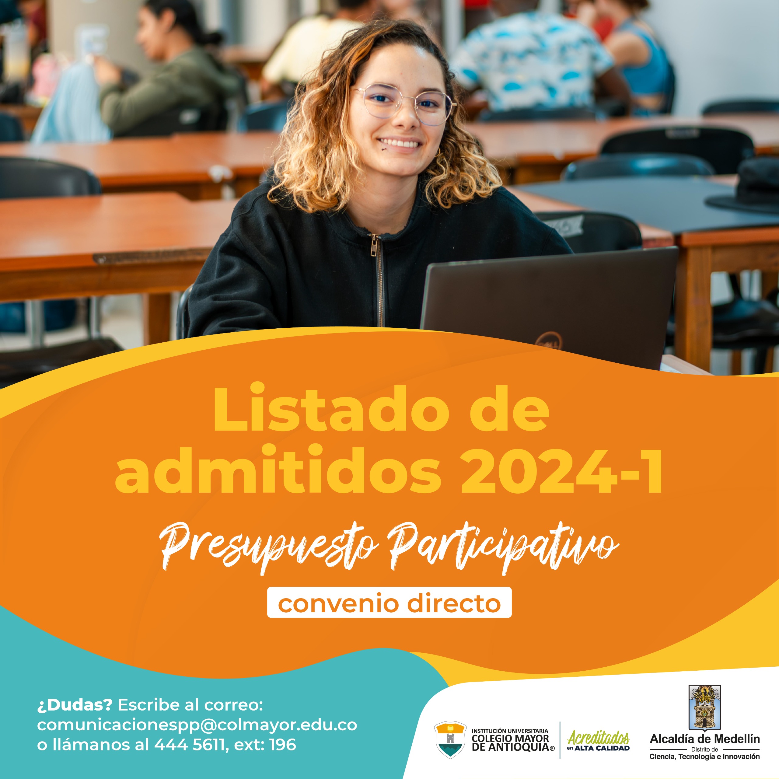 General Noticias Noticias admisiones Estudiantes nuevos admitidos de pregrado y posgrado para el semestre 2024-1 (ampliación) enero 19, 2024. Solo para aquellos aspirantes que se presentaron en la ampliación de inscripciones.