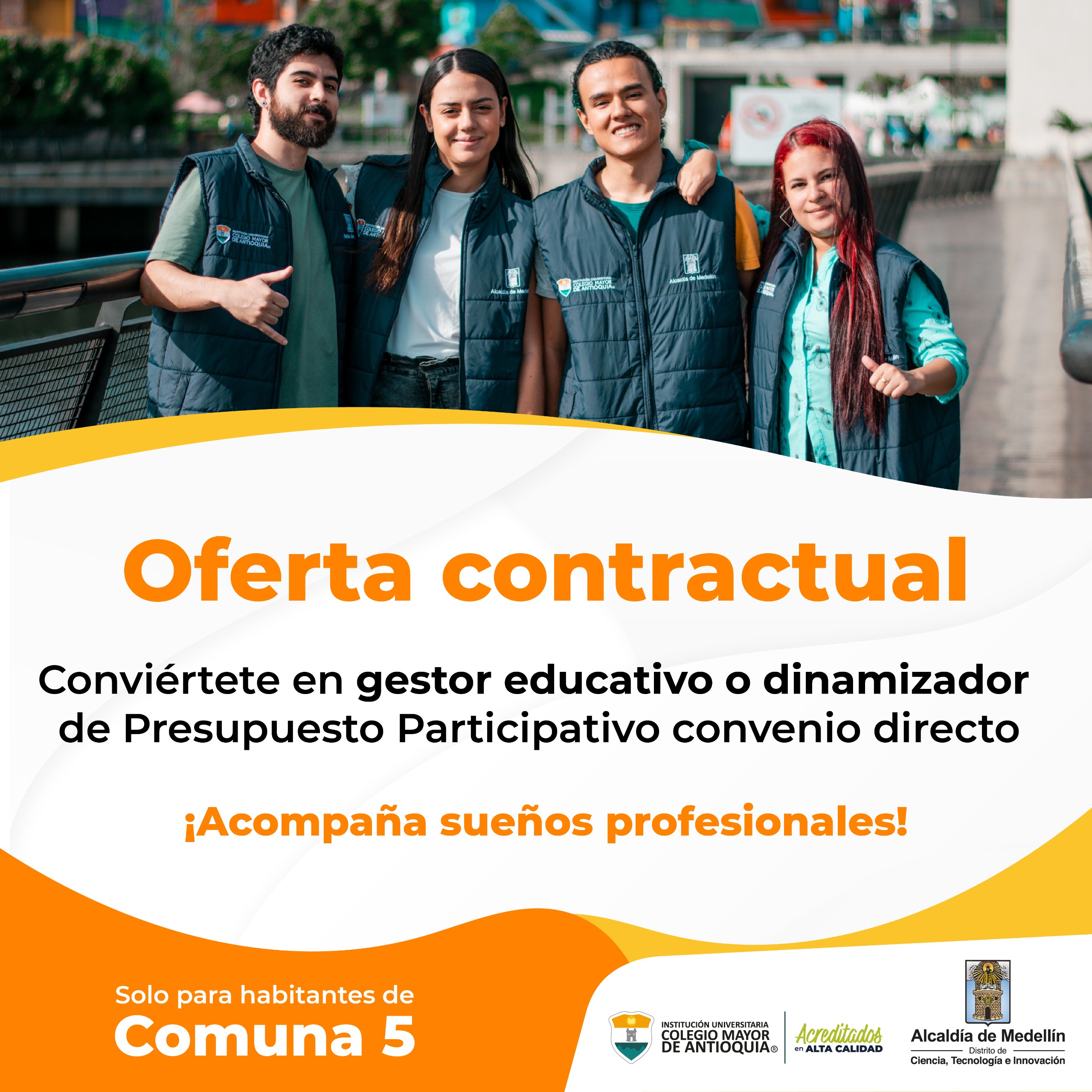 Convocatorias PP General Noticias Haz parte de nuestro equipo de trabajo. Conviértete en gestor o gestora educativa de la comuna 5 Castilla enero 23, 2024. Conoce los requisitos.