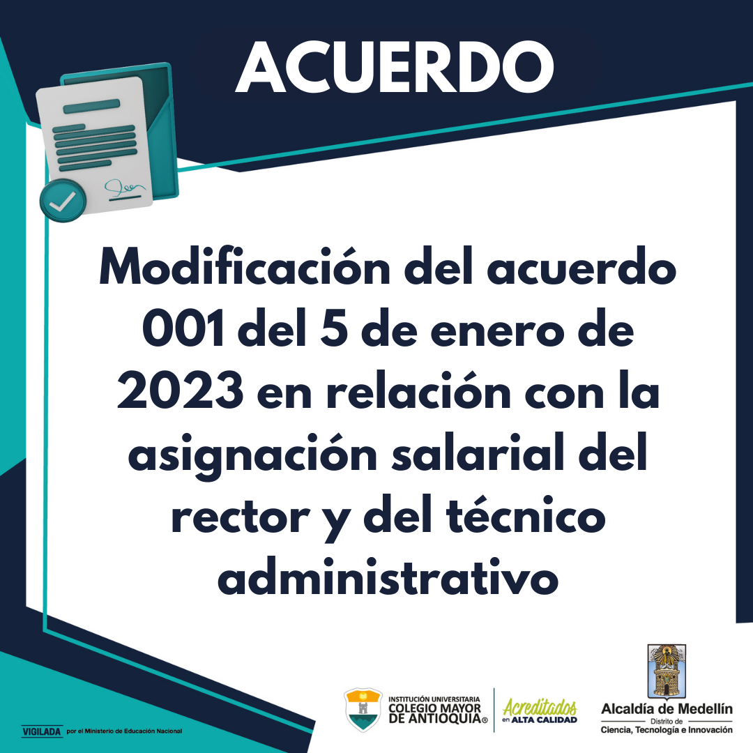 General Noticias Modificación del acuerdo 001 del 5 de enero de 2023 en relación con la asignación salarial del rector y del técnico administrativo julio 24, 2023. Conoce el acuerdo.