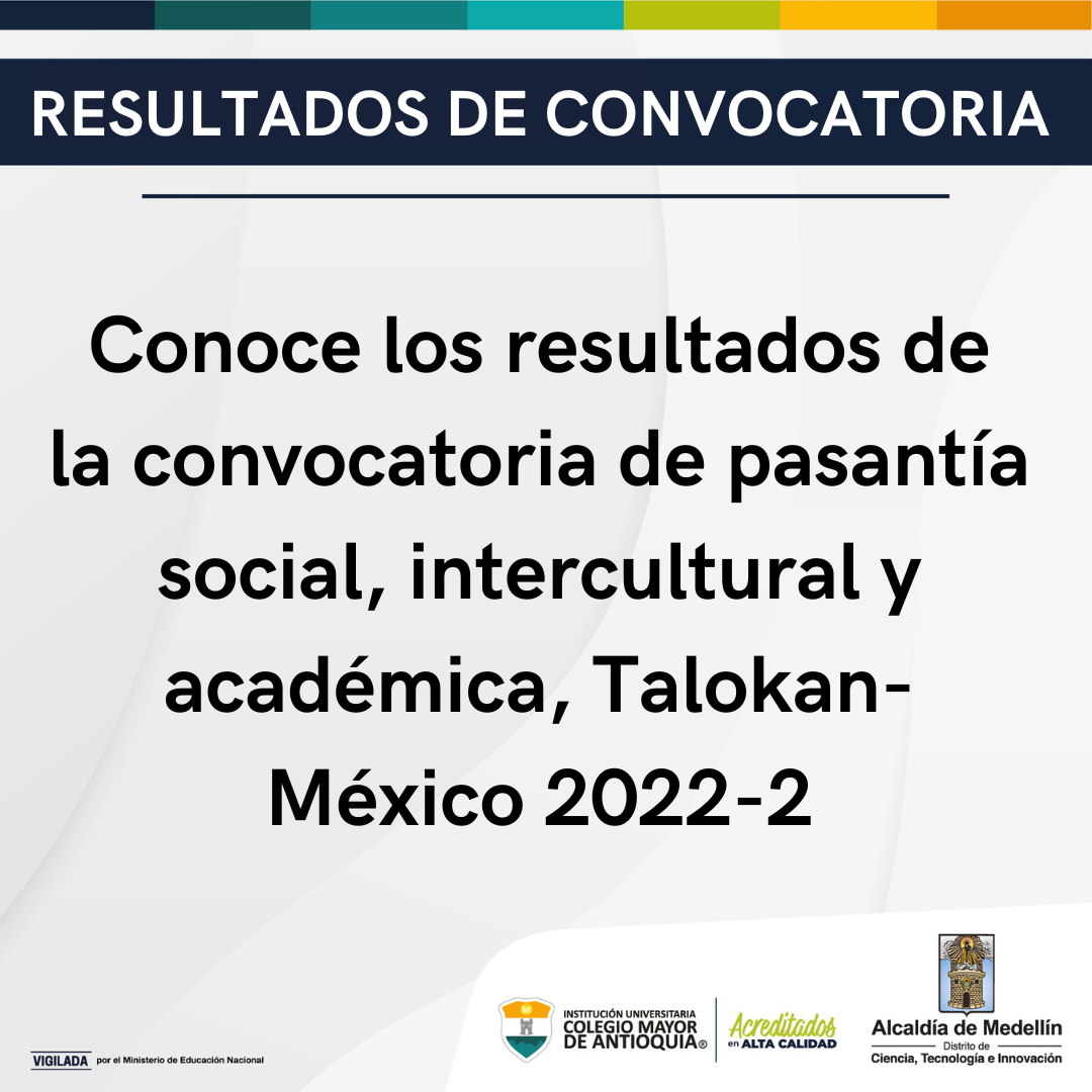 Convocatorias General Noticias Resultados de la convocatoria de pasantía social, intercultural y académica Talokan, México 2022-2 octubre 31, 2022. Conoce los resultados.