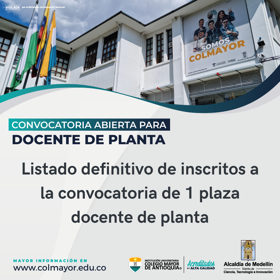 Convocatorias General Noticias Convocatoria abierta para una plaza docente de planta noviembre 2, 2022. Listado definitivo de inscritos. Conócelos.