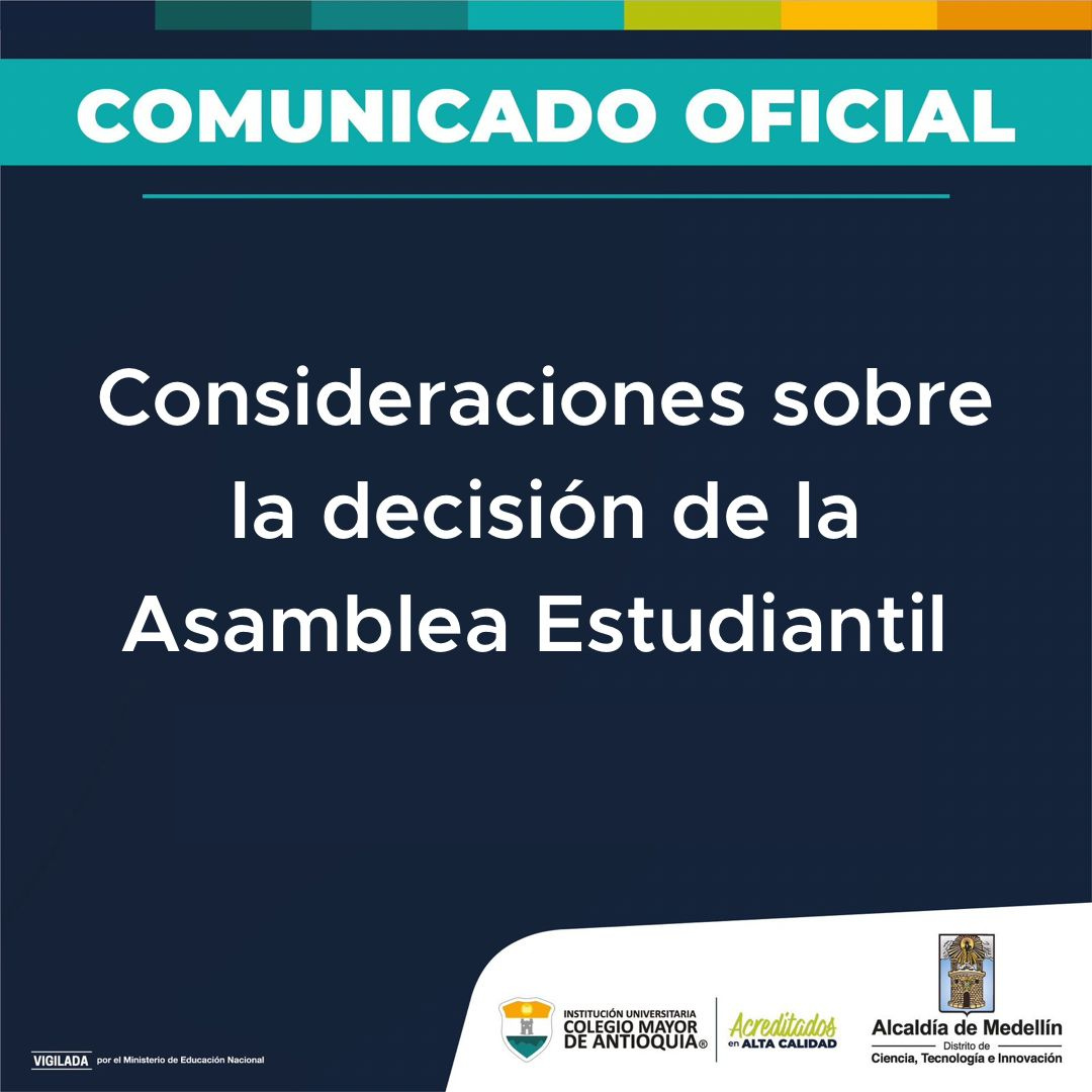 General Noticias Consideraciones sobre la decisión de la Asamblea Estudiantil octubre 8, 2022. Conoce el comunicado del Consejo Académico.