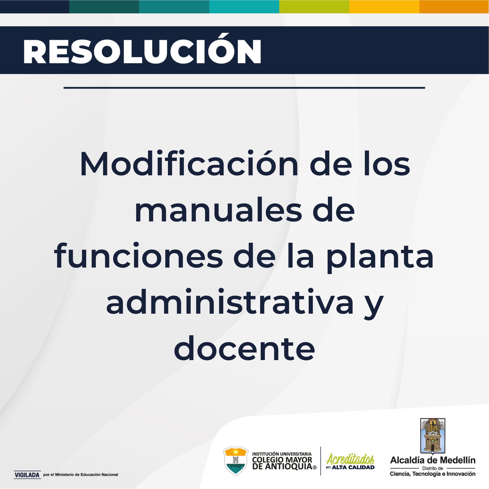 General Noticias Modificación de los manuales de funciones de la planta administrativa y docente octubre 4, 2022. Conoce las resoluciones.