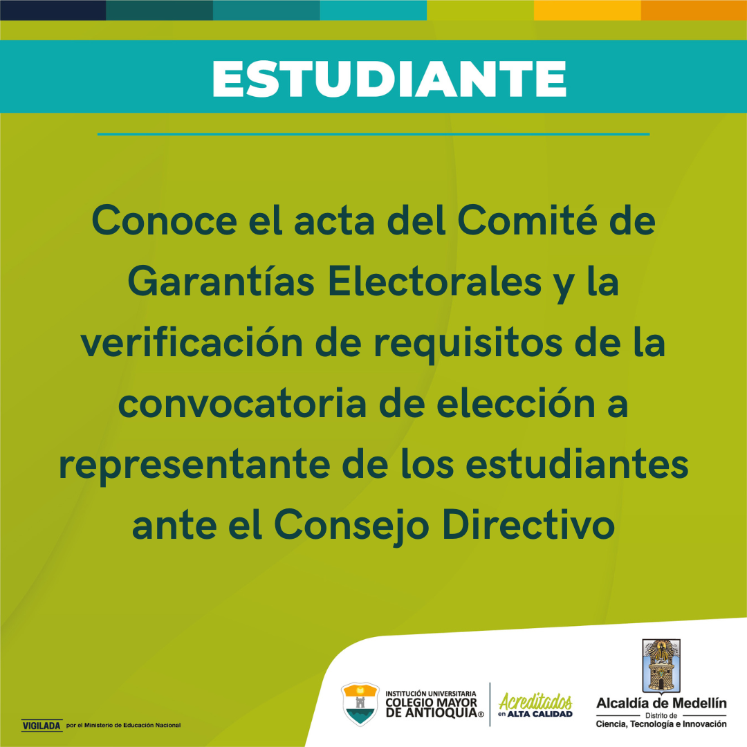 Convocatorias General Noticias Conoce los candidatos a representar los estudiantes ante el Consejo Directivo septiembre 23, 2022. Conoce el acta.