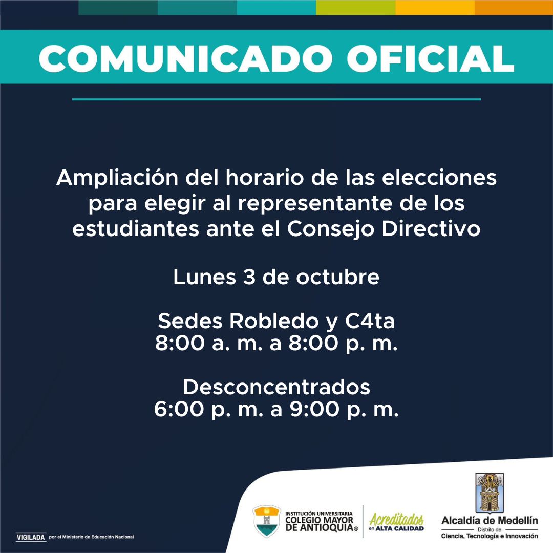 General Noticias Ampliación de horario de elecciones a estudiante representante ante el Consejo Directivo septiembre 30, 2022. Conoce el acta del Comité de Garantías.