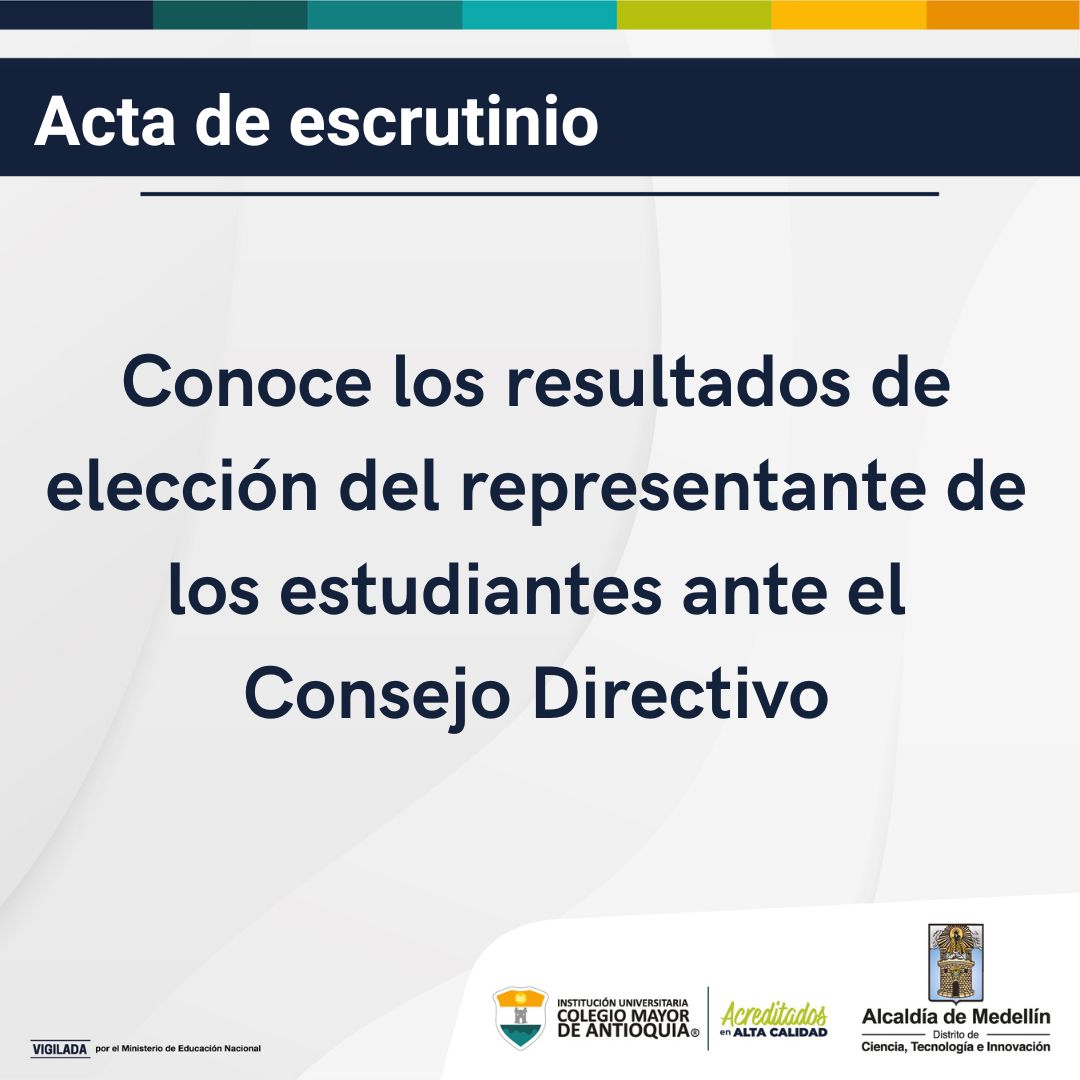 General Noticias Resultado de las elecciones de votación del representante de los estudiantes ante el Consejo Directivo octubre 3, 2022. Conoce el acta de escrutinio.