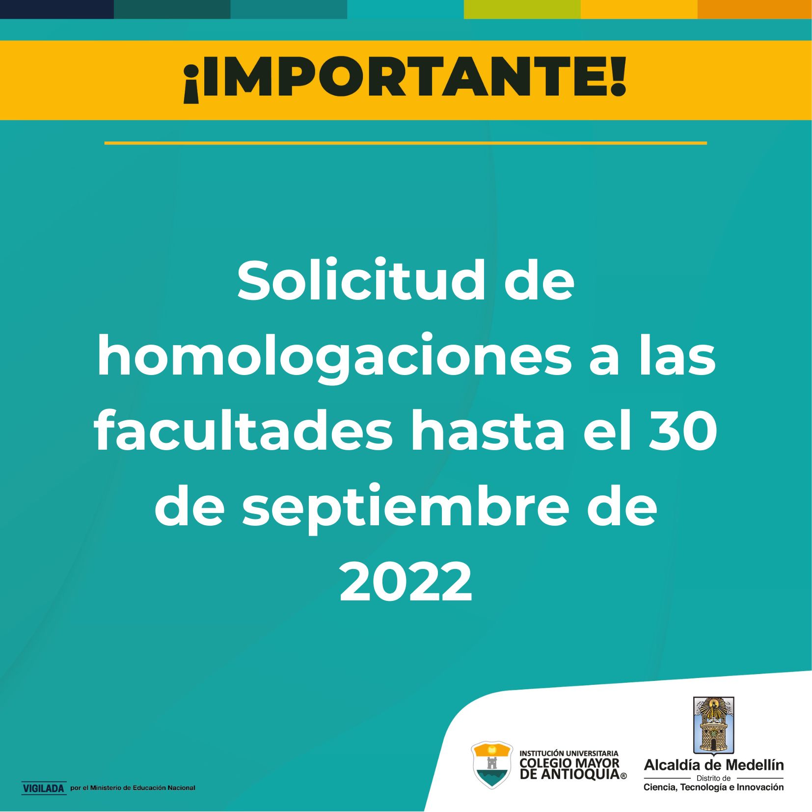 General Noticias Noticias admisiones Solicitud de homologaciones a la facultad septiembre 6, 2022. Realízala hasta el 30 de septiembre de 2022