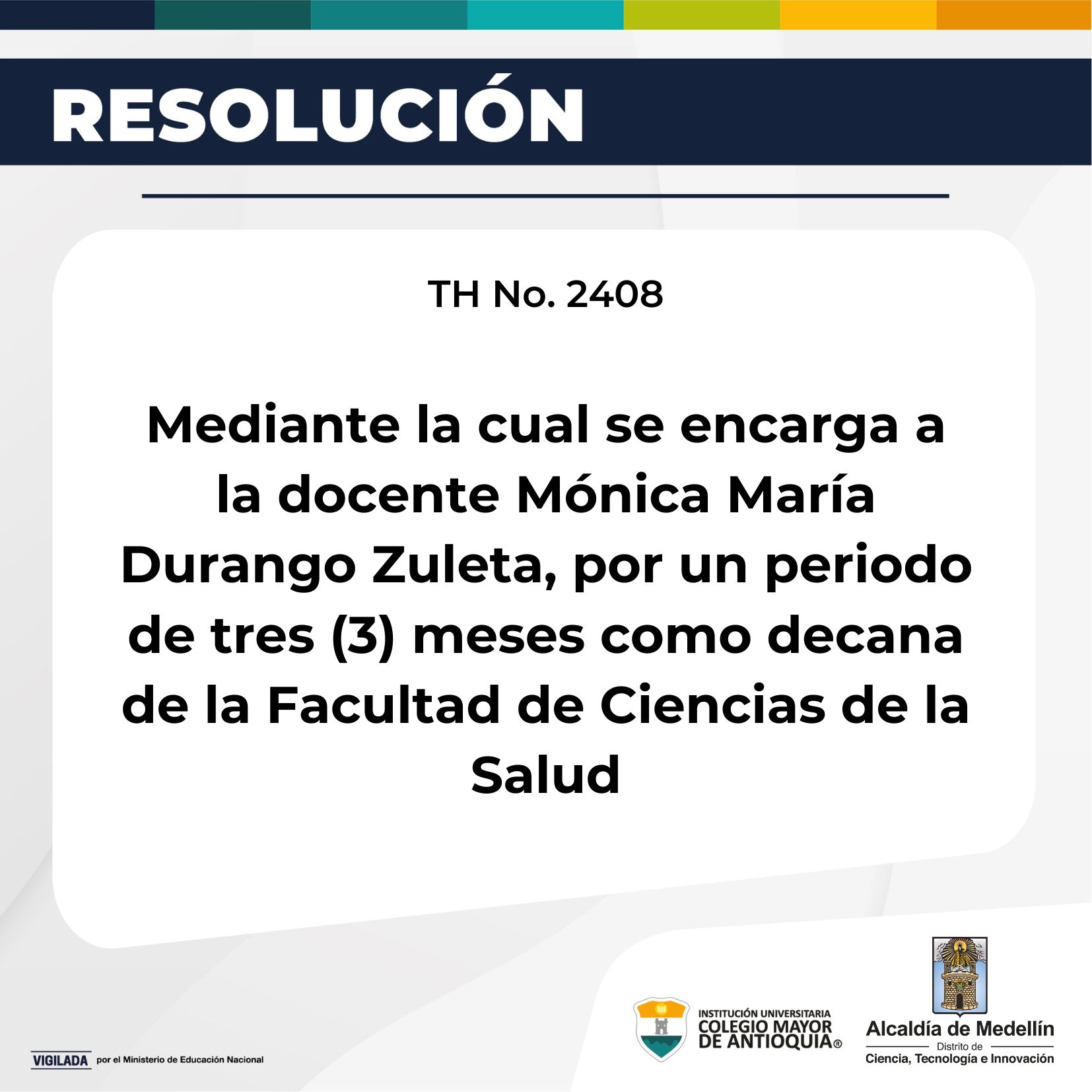 General Noticias La docente Mónica María Durango Zuleta, será decana encargada de la Facultad de Ciencias de la Salud septiembre 5, 2022. Conoce la resolución.